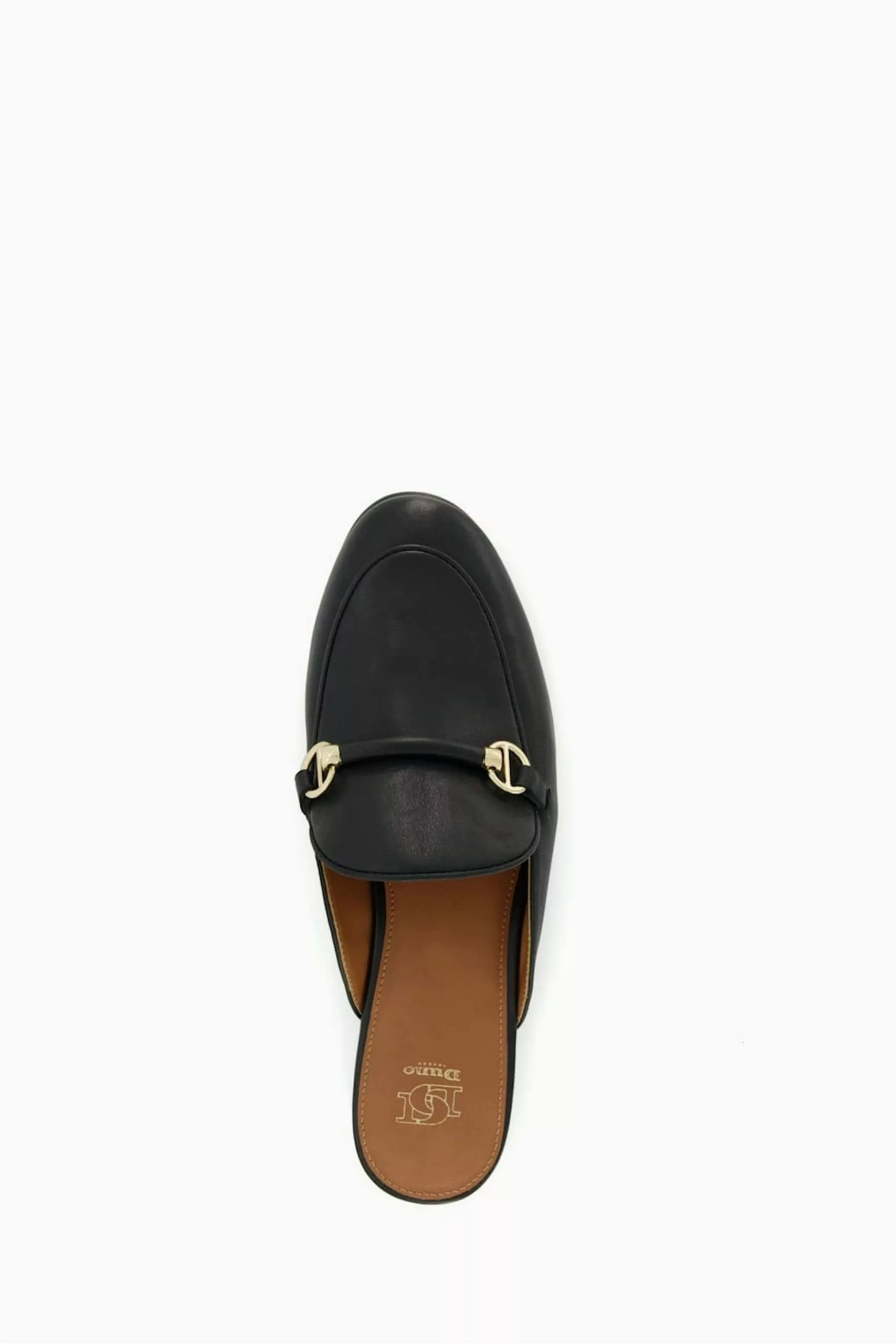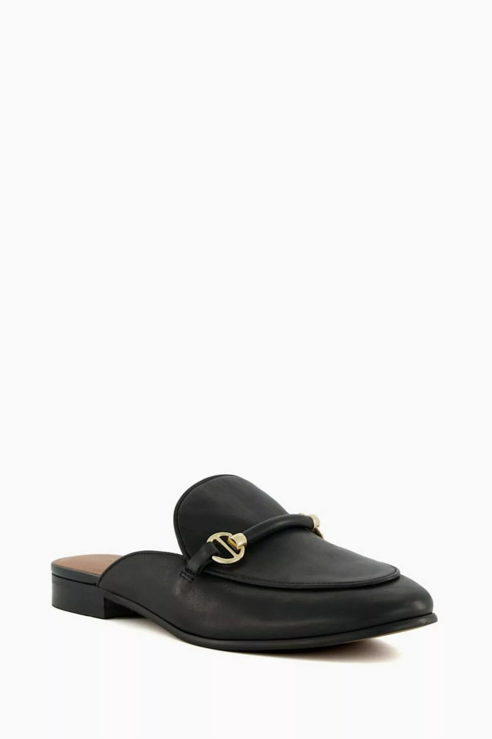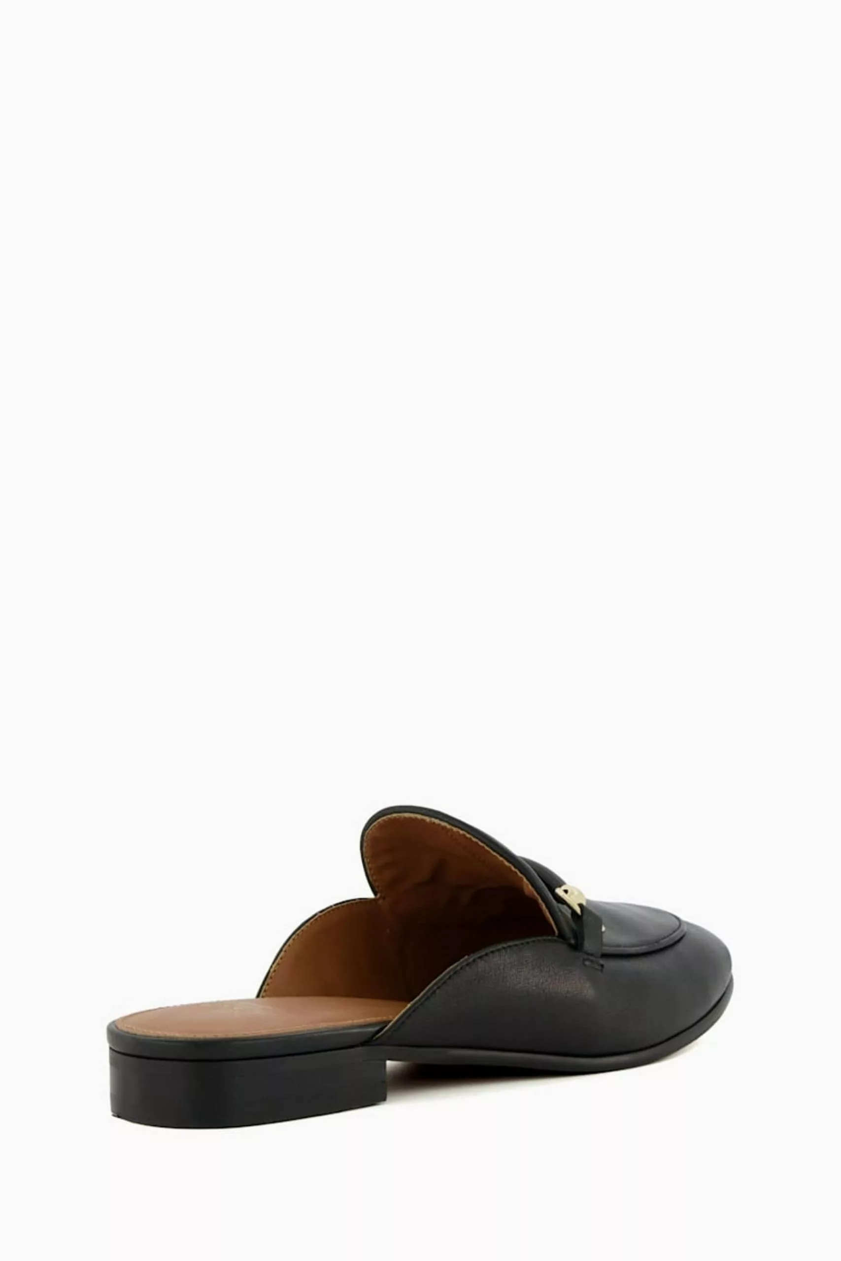 Dune London Black Glowed Slimsole Backless Snaffle Mules