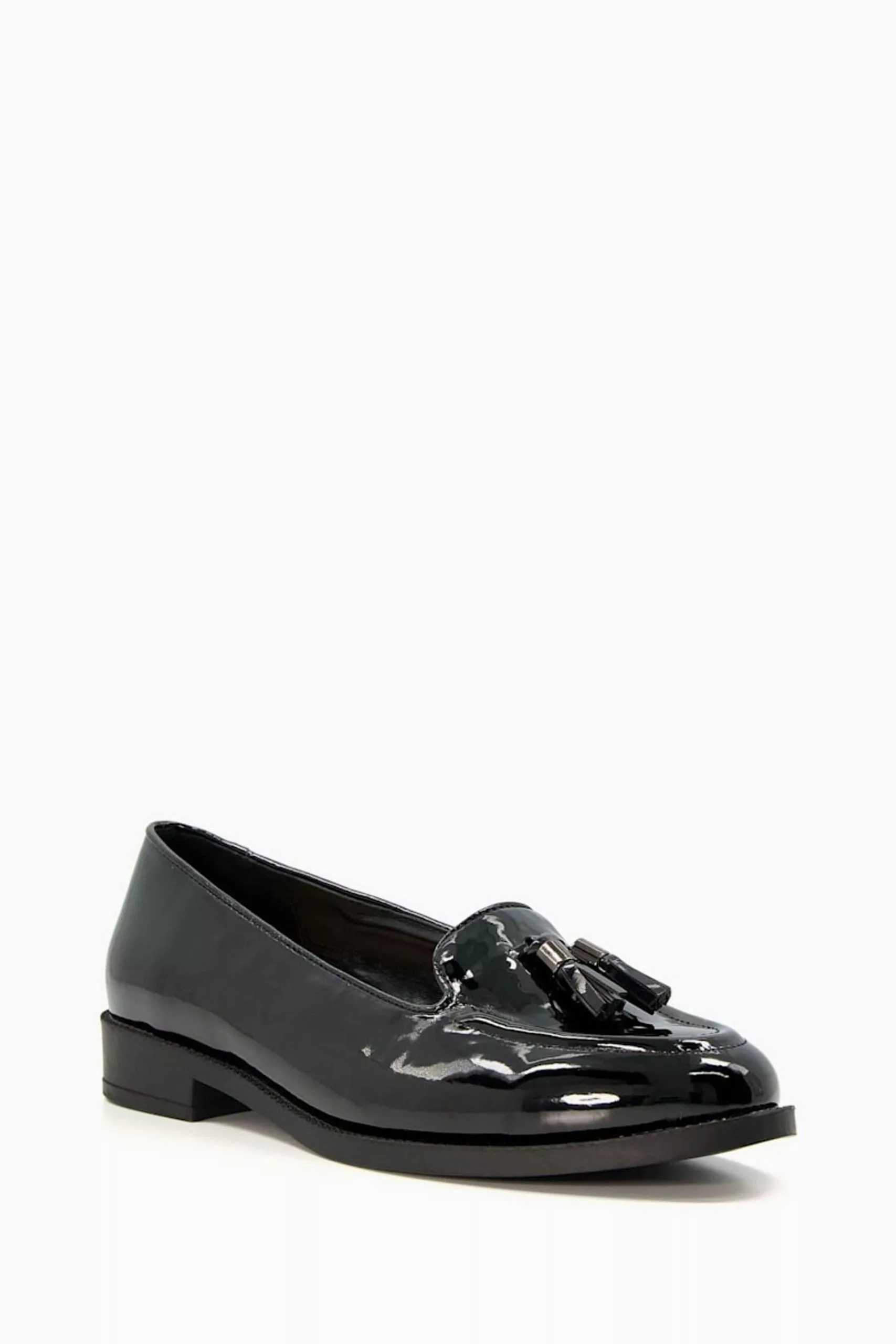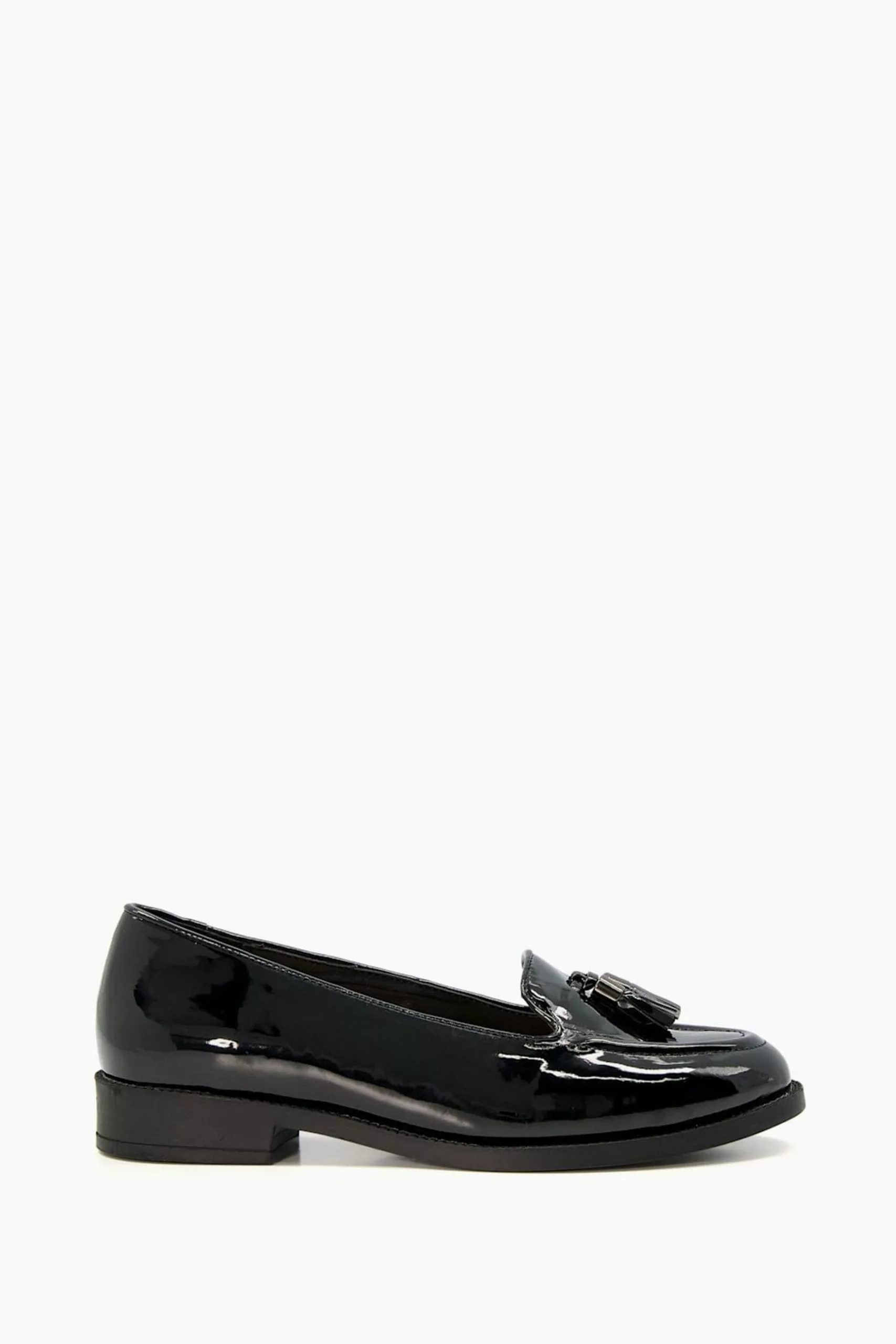 Make a timeless style statement with our Global loafers. Resting on a low flat heel and desinged in a luxe patent finish, the almond-toe front has a chic tassel trim that will instantly elevate your shoe line-up. The perfect pairing with any formal or smart-casual look, slip yours on and stay on-trend with minimal effort.