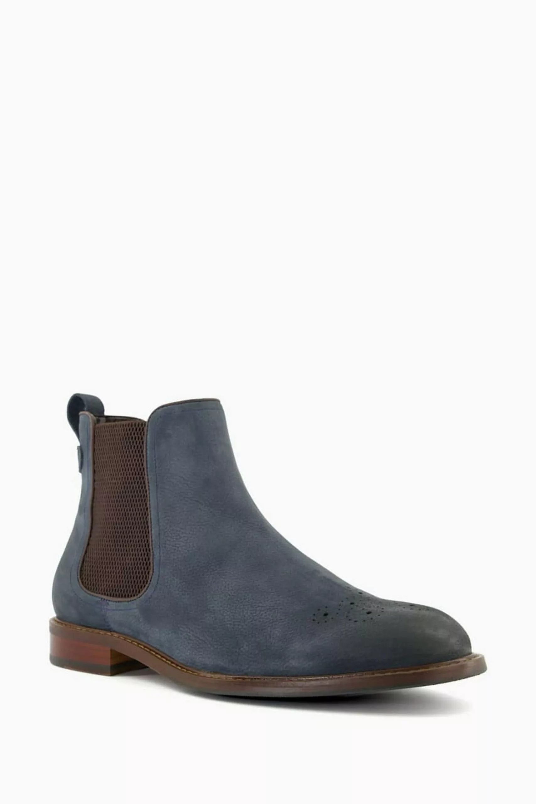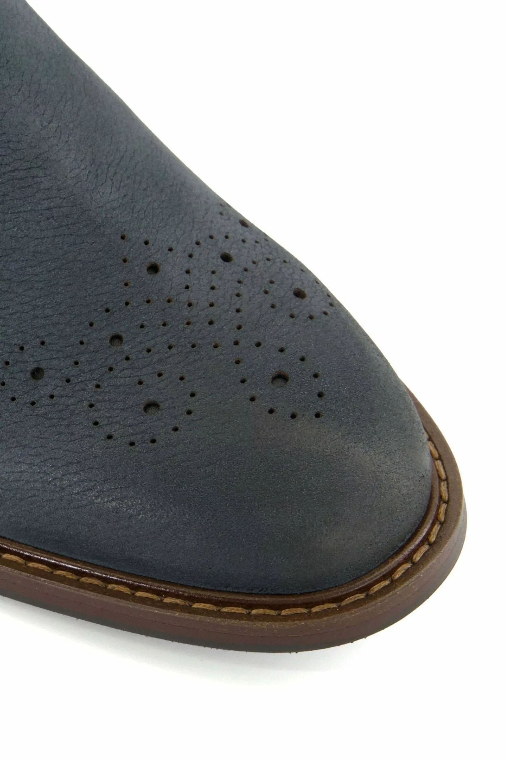 Dune London Blue Clicker Brogue Toe Chelsea Boots