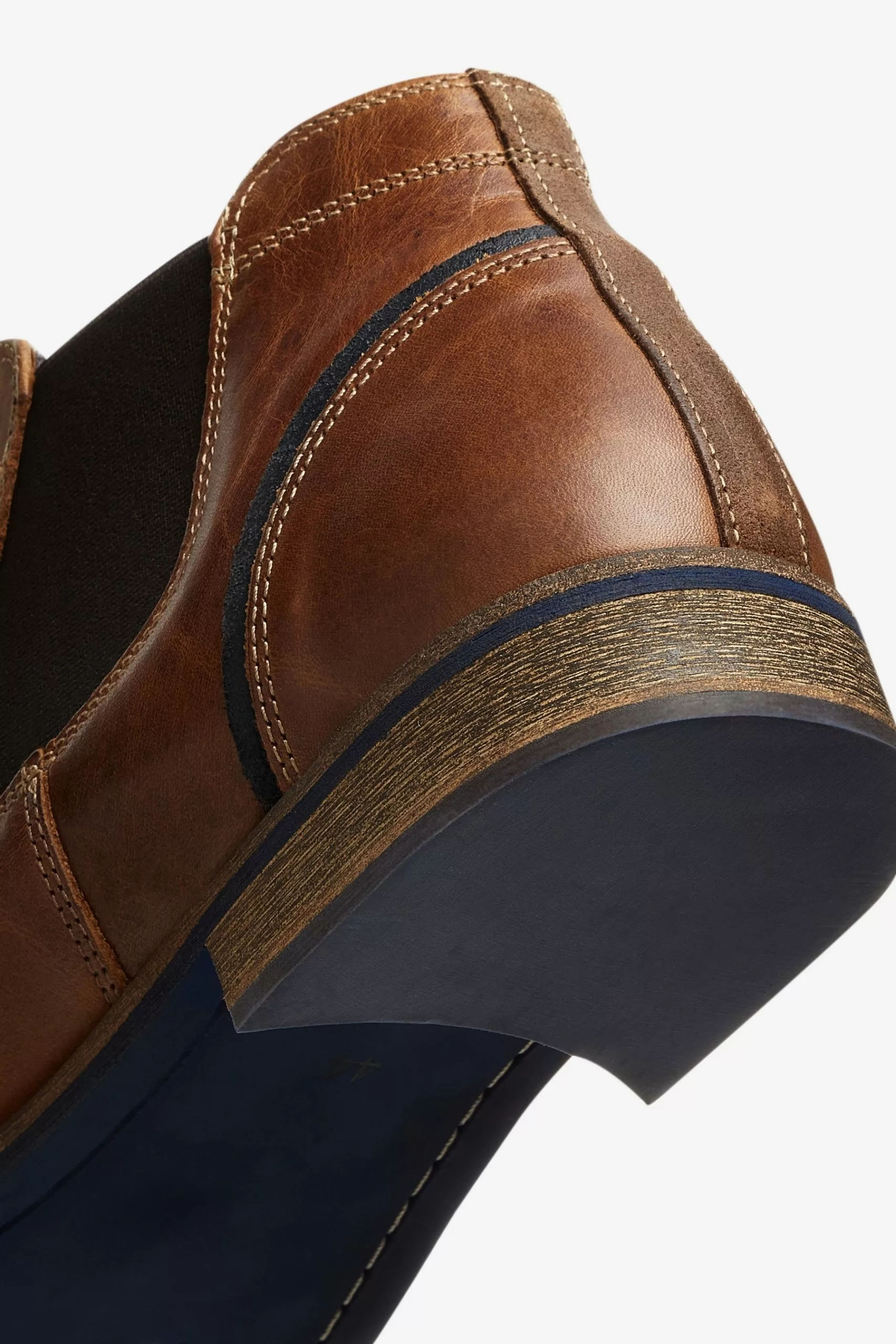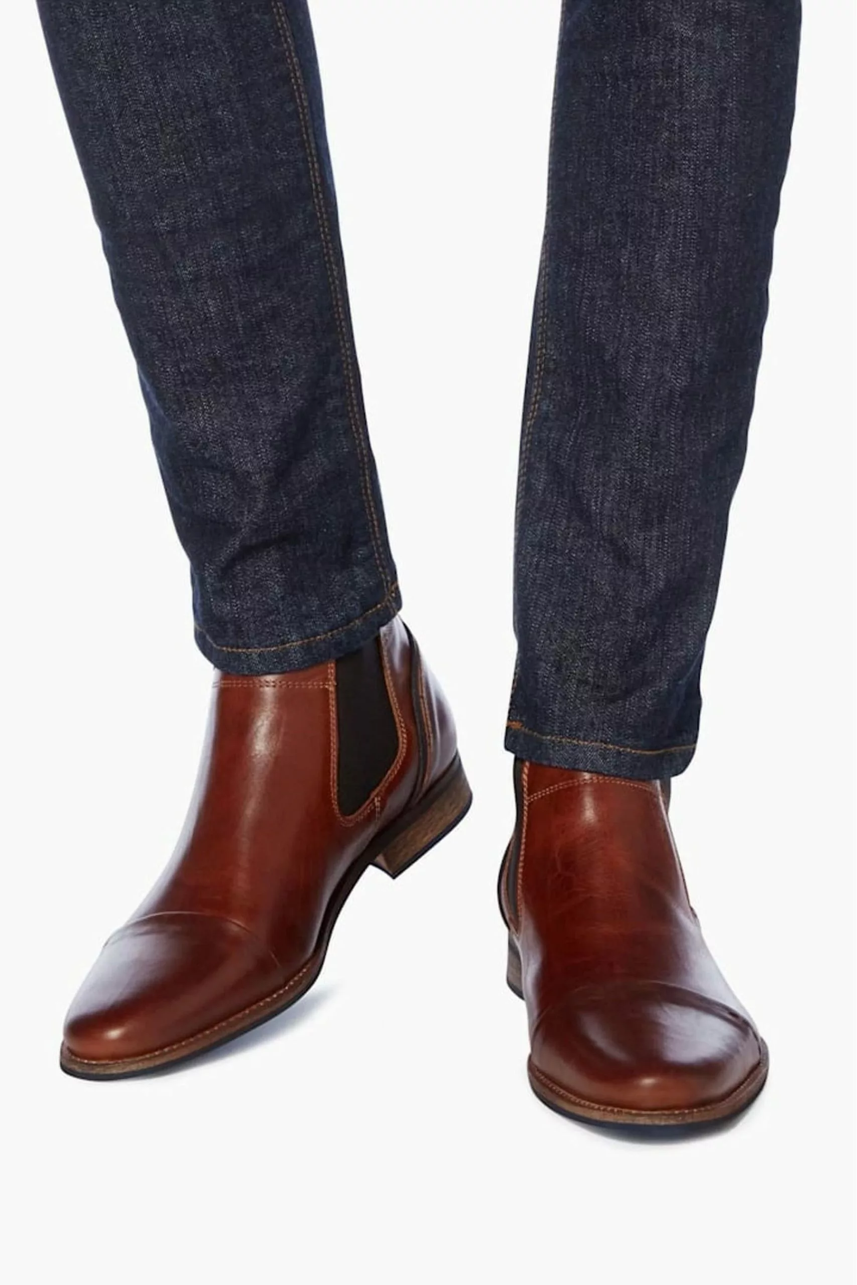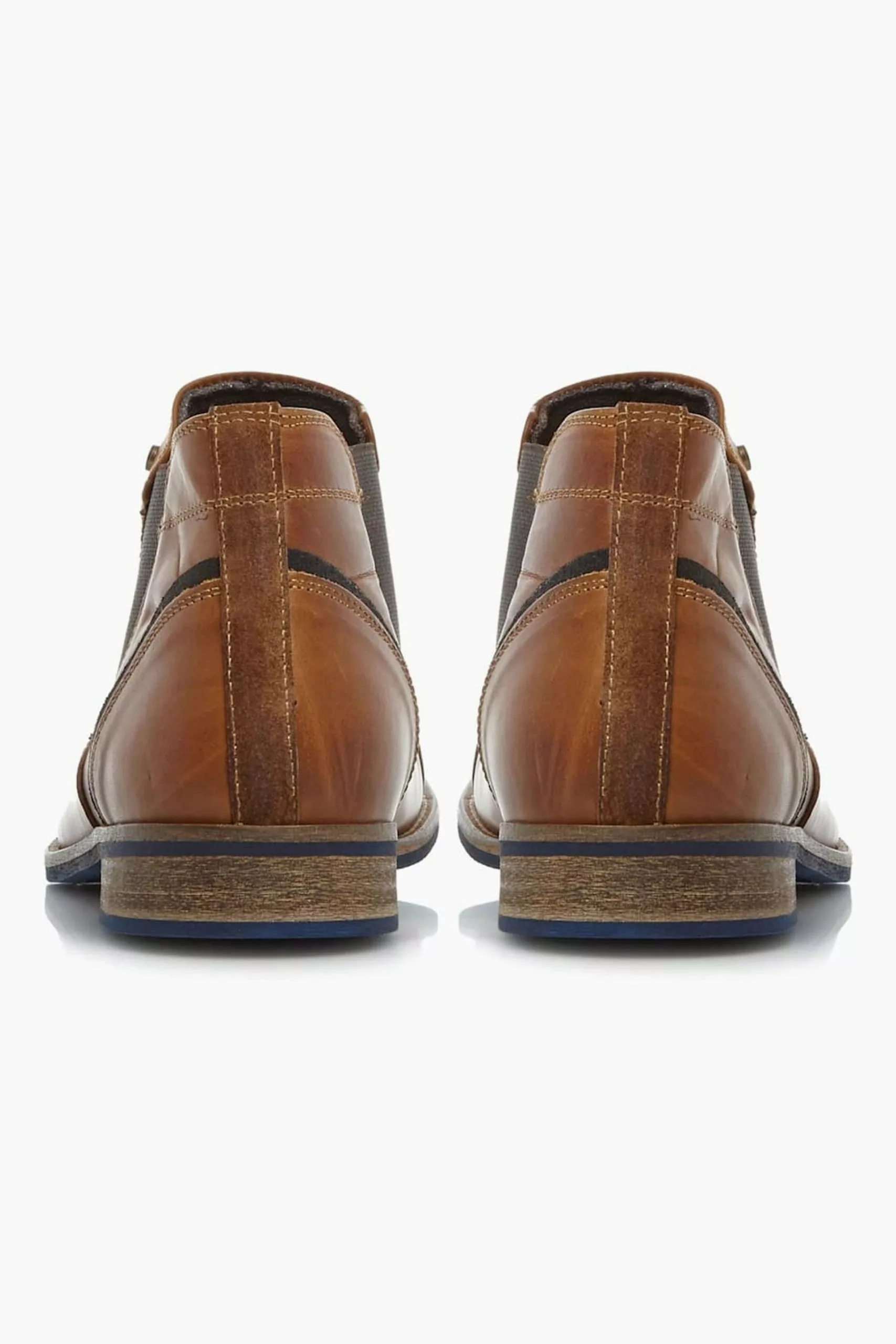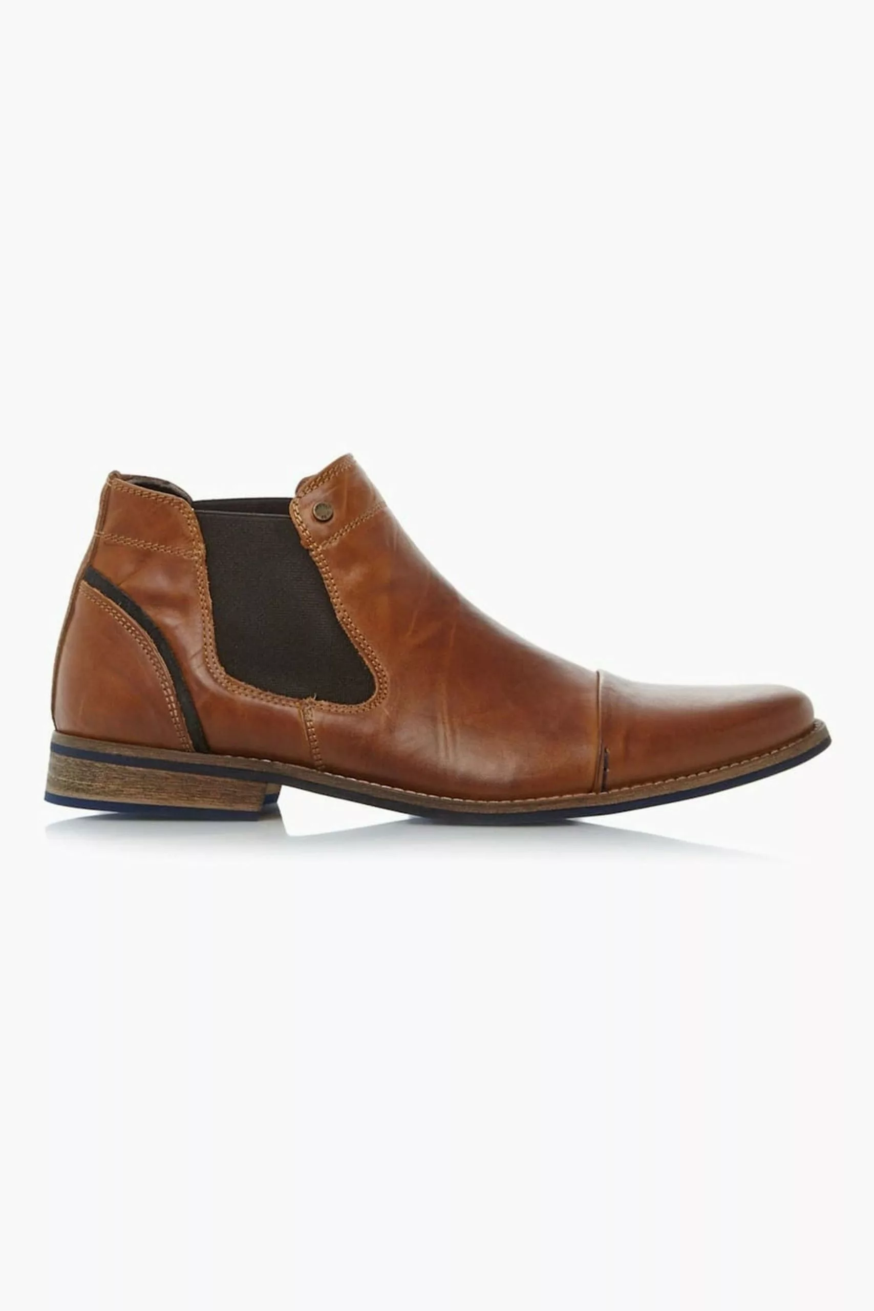 Dune London Brown Chili Leather Toecap Detail Chelsea Boots