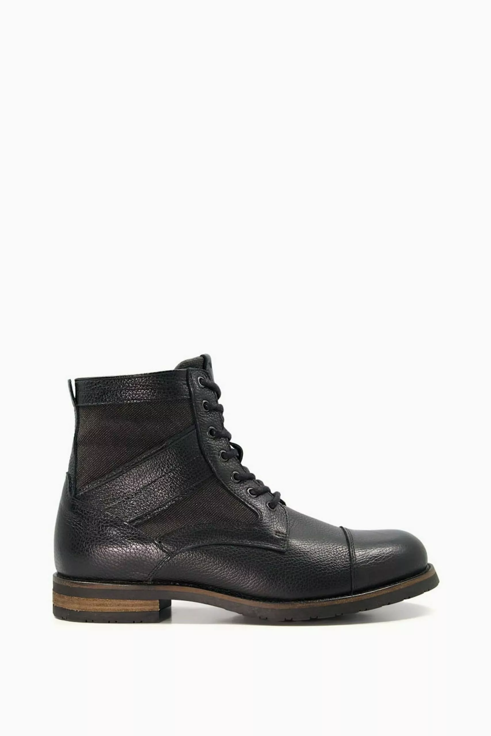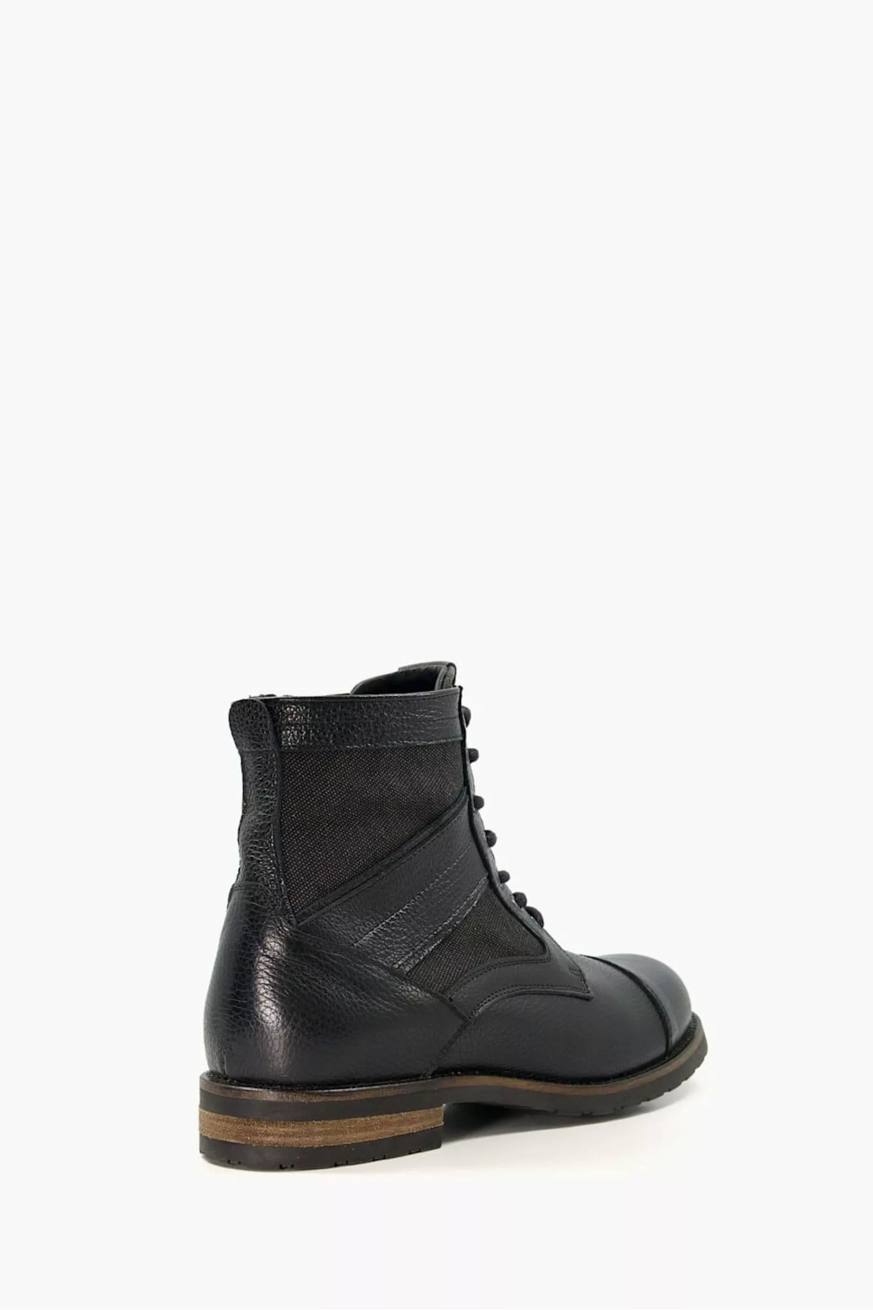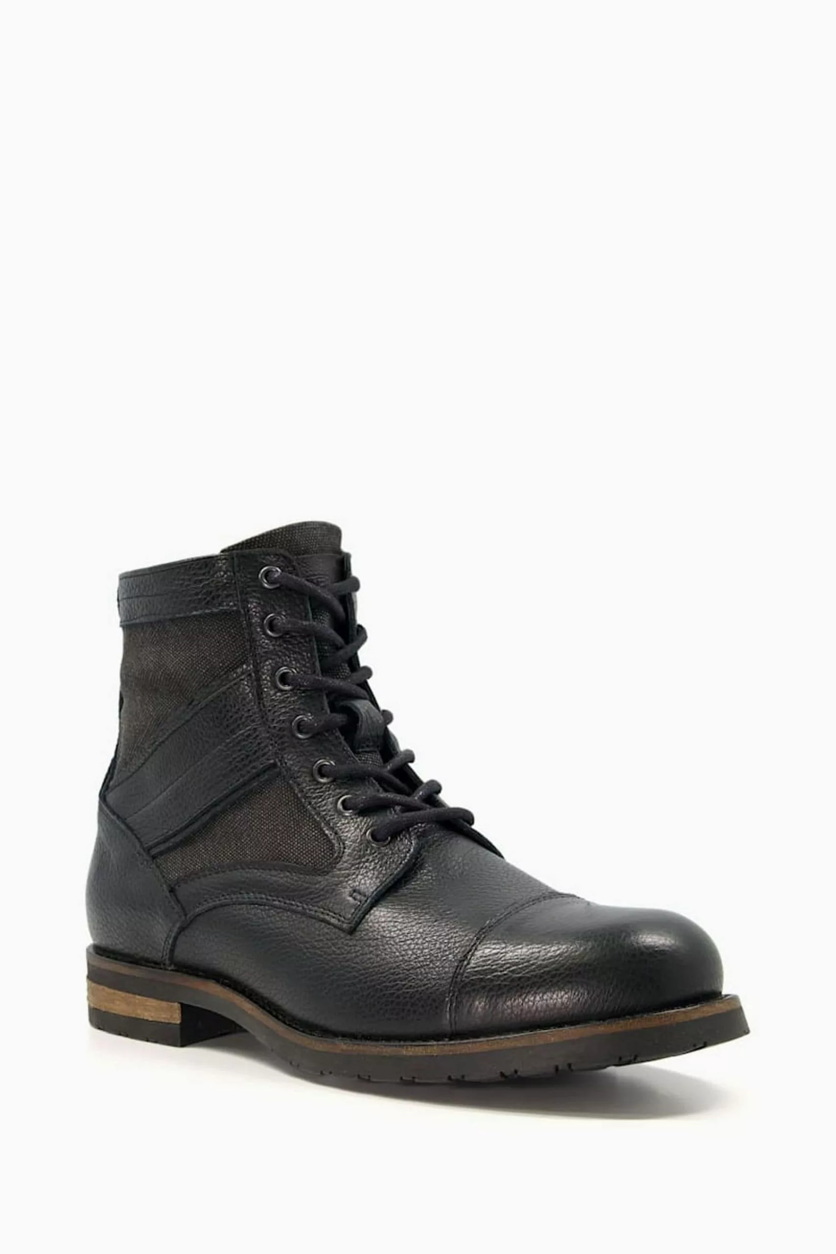 Dune London Cornered Canvas Panelled Toeca Black Boots