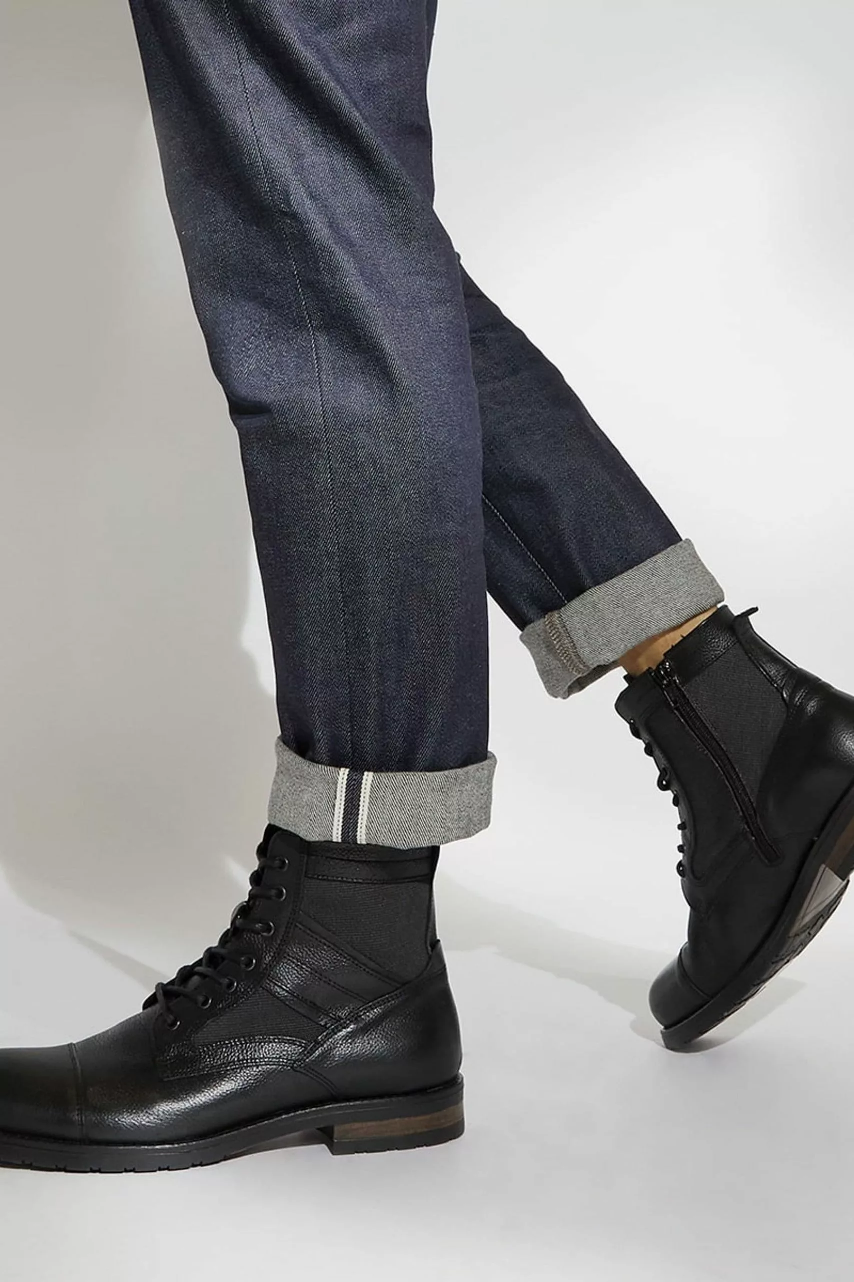 Meticulously crafted with smooth premium leather, our casual cornered boots will infuse a touch of luxury into your everyday wardrobe. Set on a sturdy flat sole, the lace-up front is accentuated with metal eyelets for a refined finish. Cut for a neat round toe, the textural base has been overlayed with intricately cut-out details that effortlessly update the style.