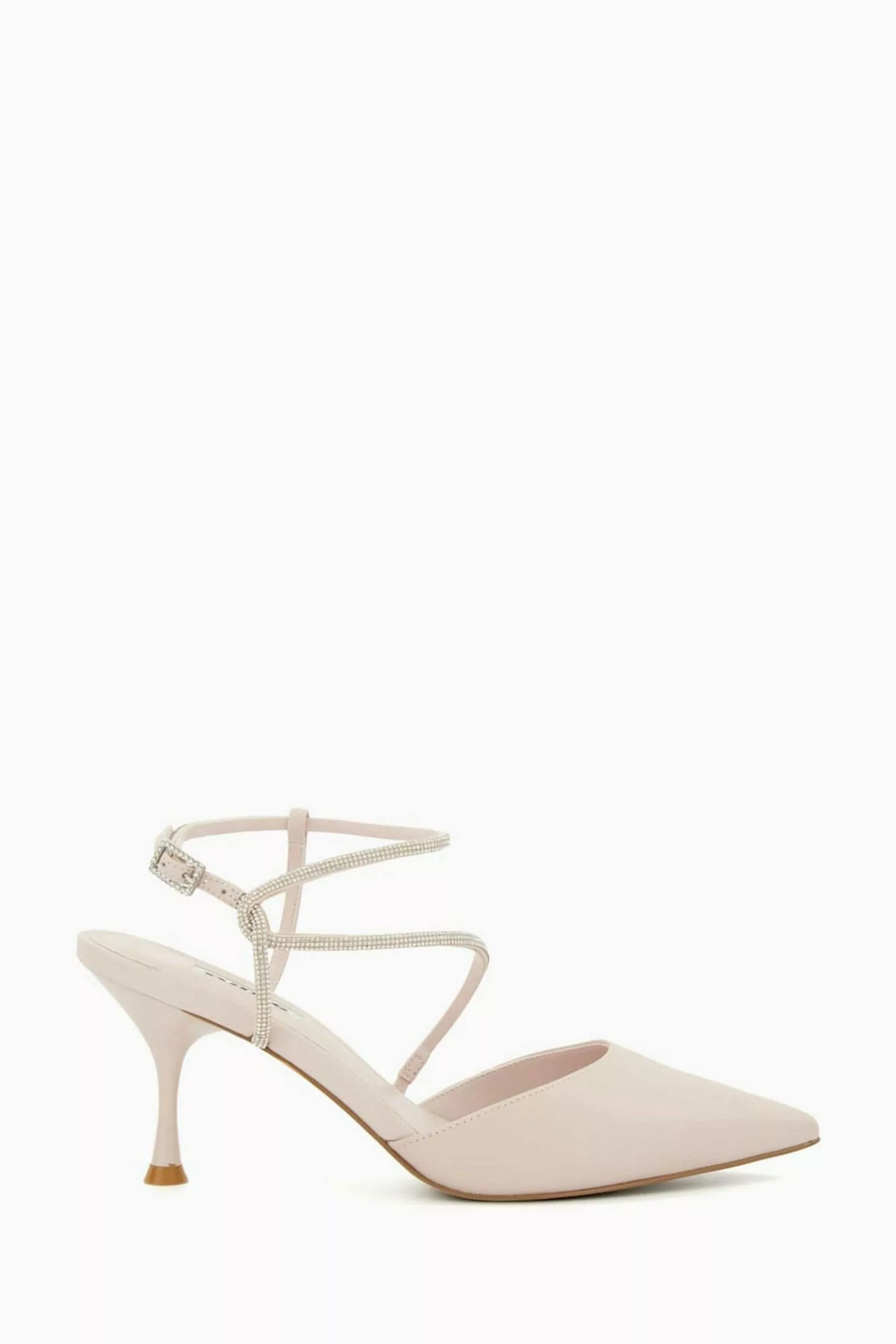Dress for the occasion with style Carlota. Crafted with the finest materials the strappy asymmetric vamp to this enhanced style has been adorned with diamante embellishments and detailed with a pointed toe. Finished with a square side buckle our elegant silhouette will walk you through dawn till dusk no matter the occasion.