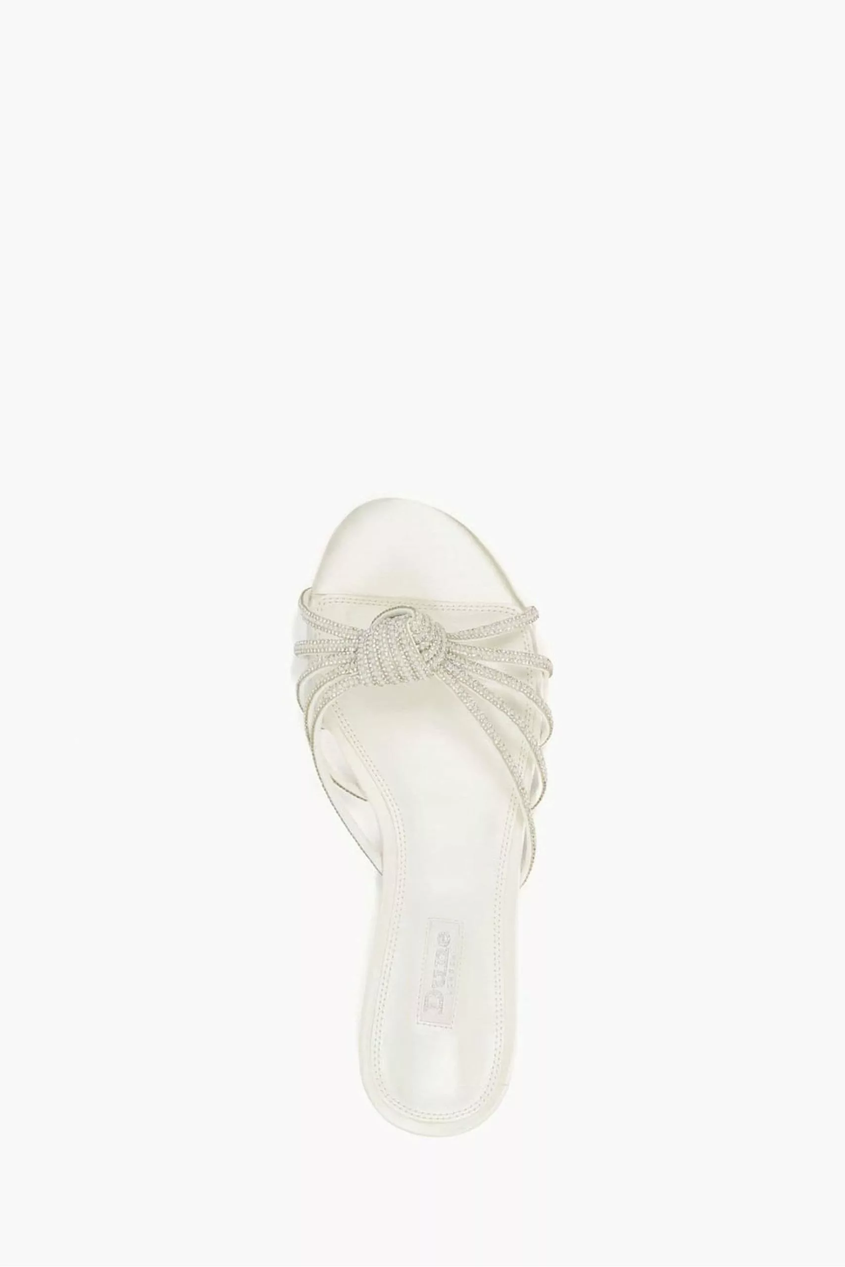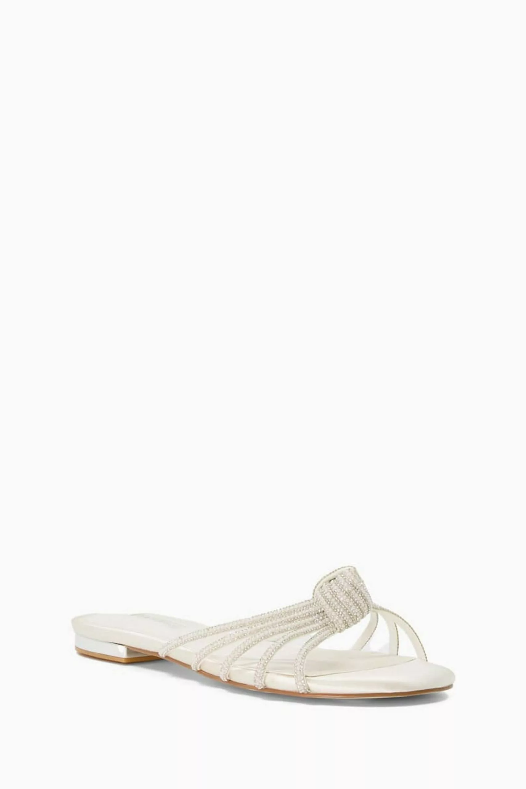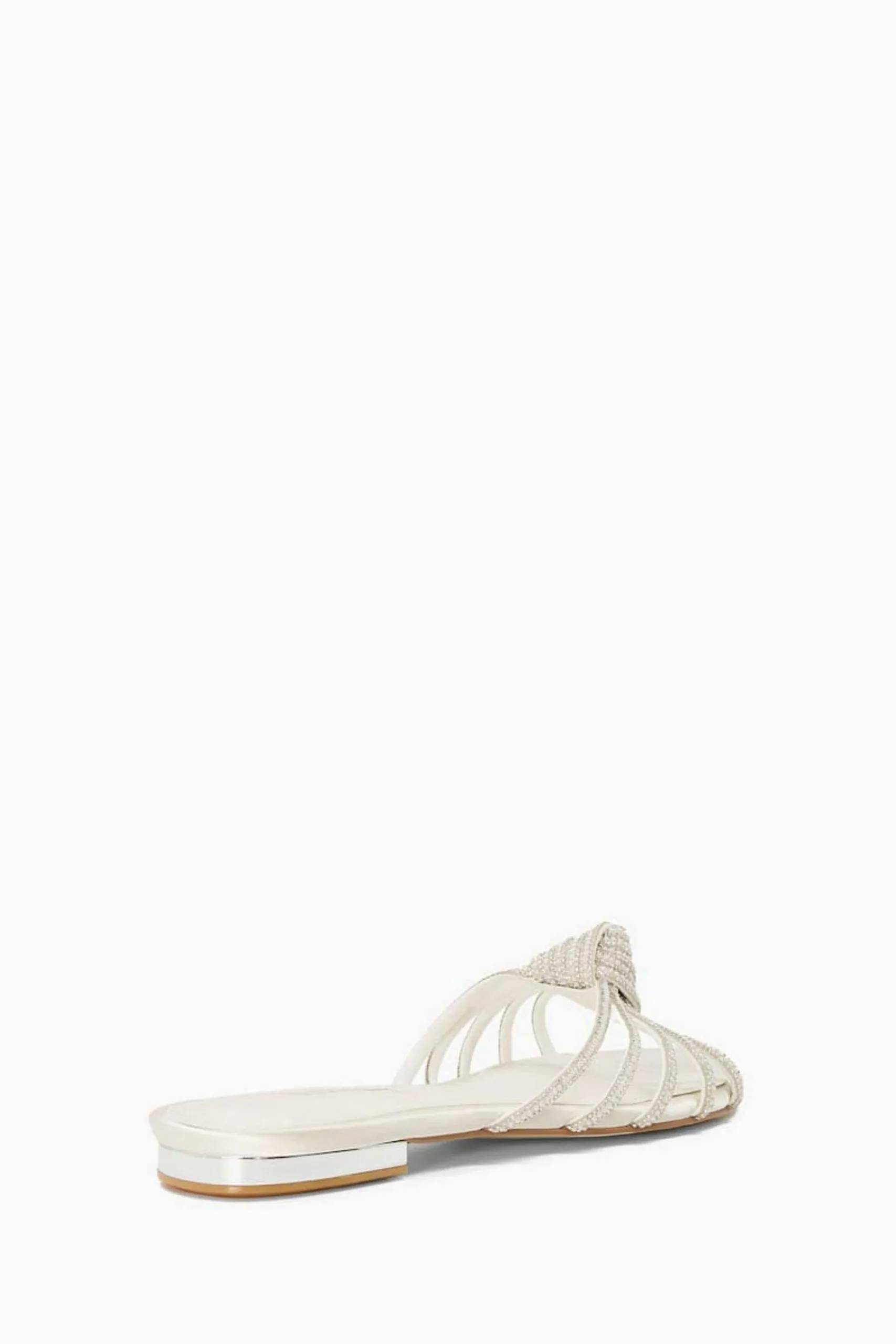 Dune London Cream Newlie Crystal Knot Flat Sandals
