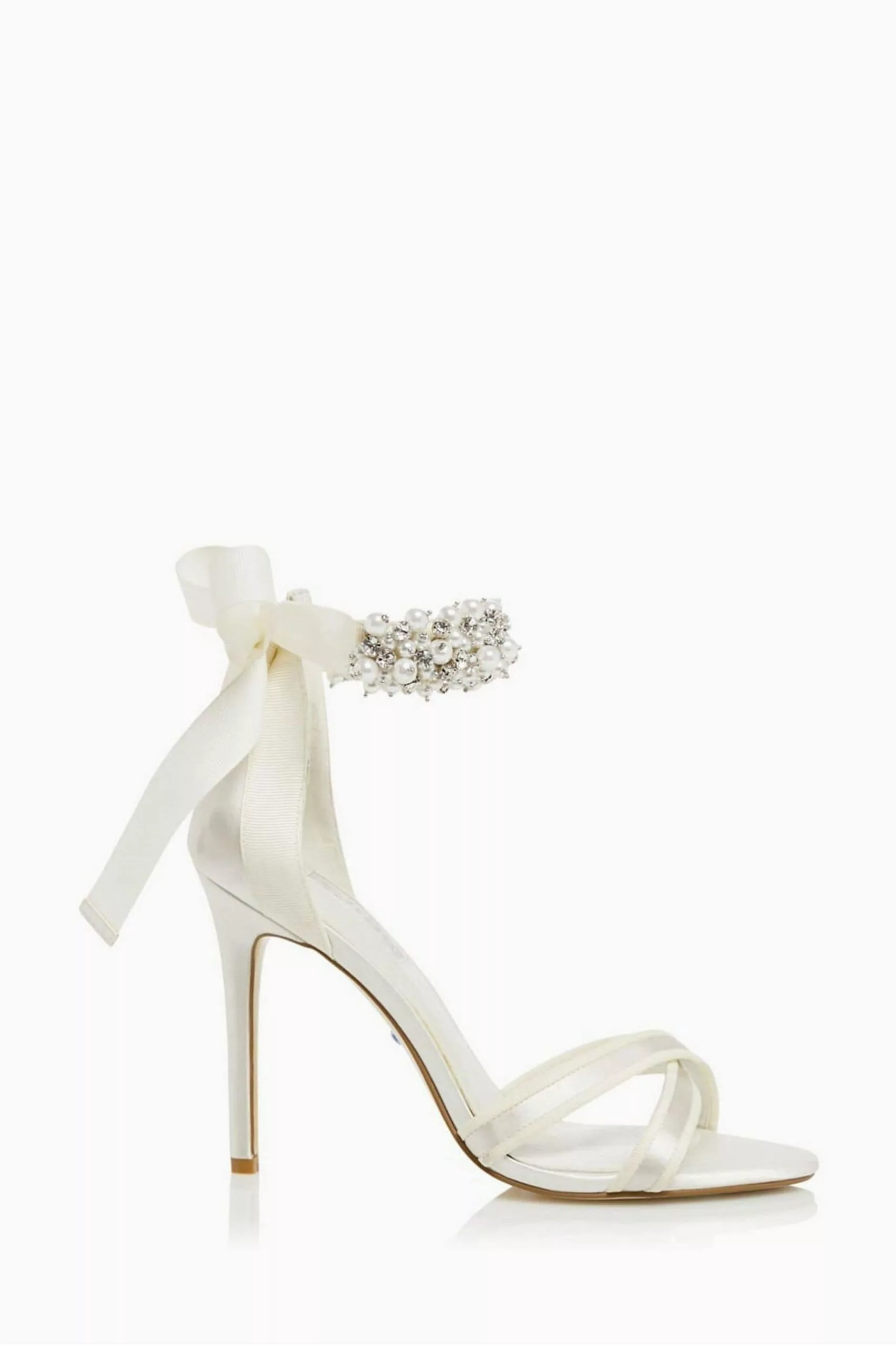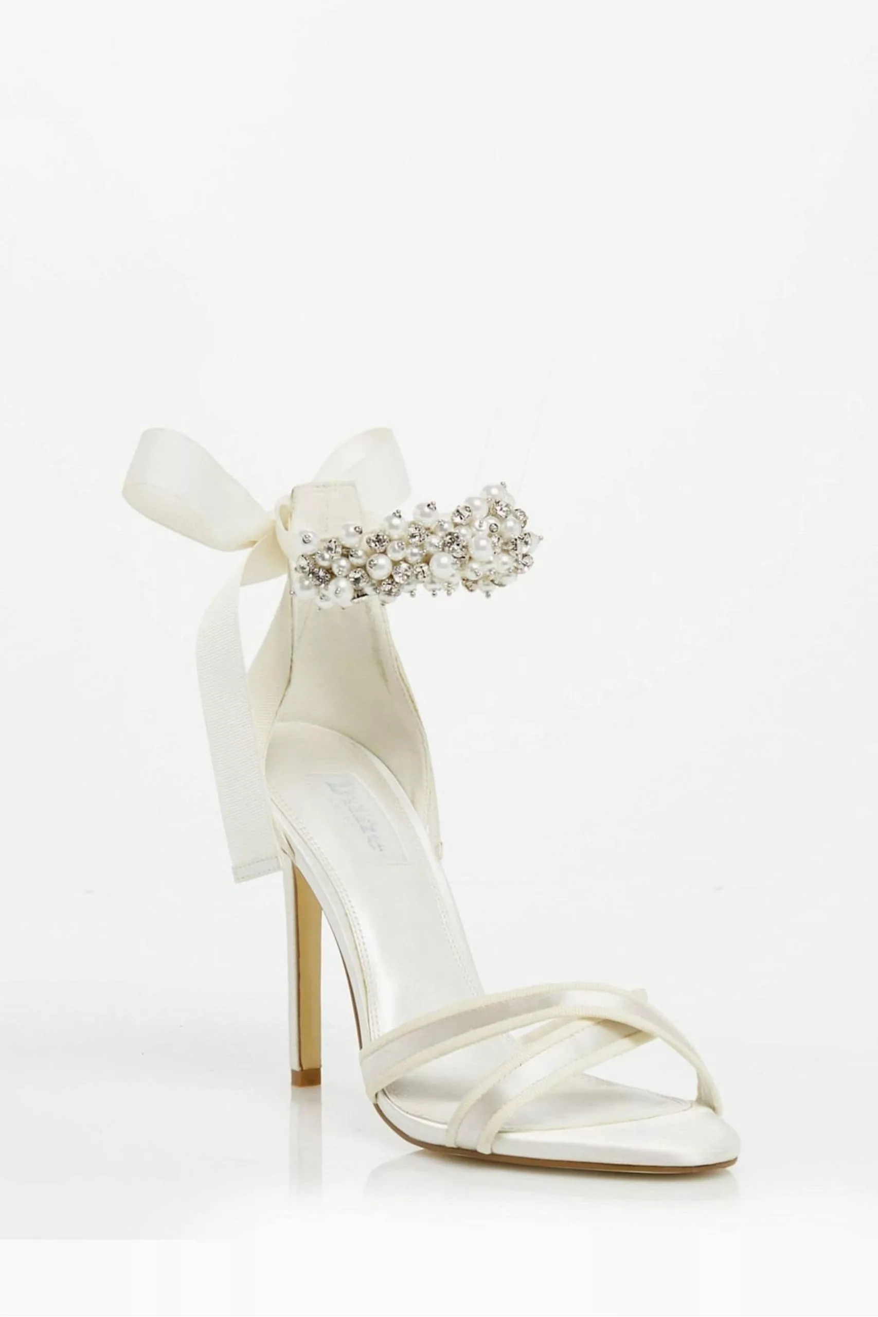 Dune London Cream Wf Martina Embellished Ankle Tie Sandals