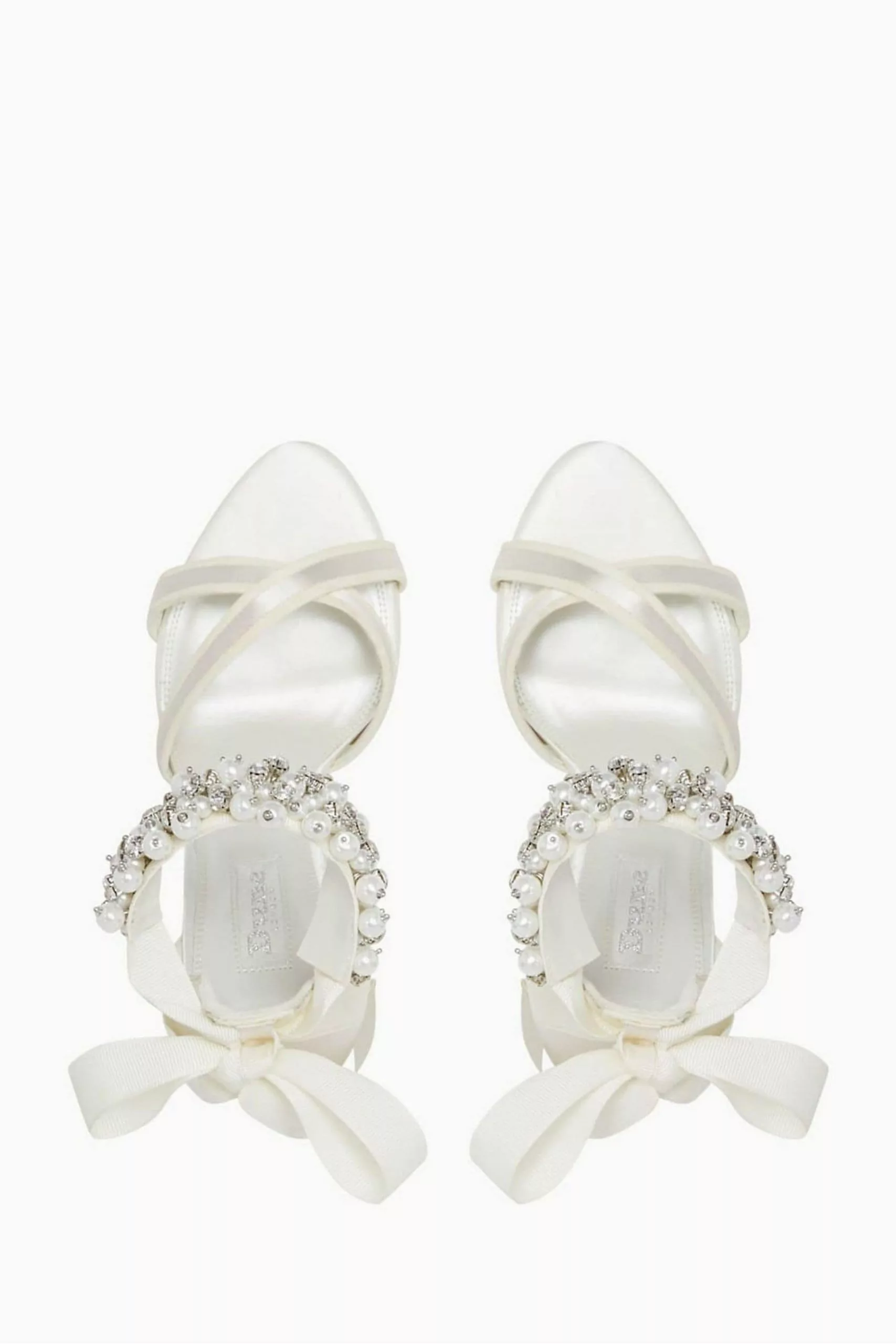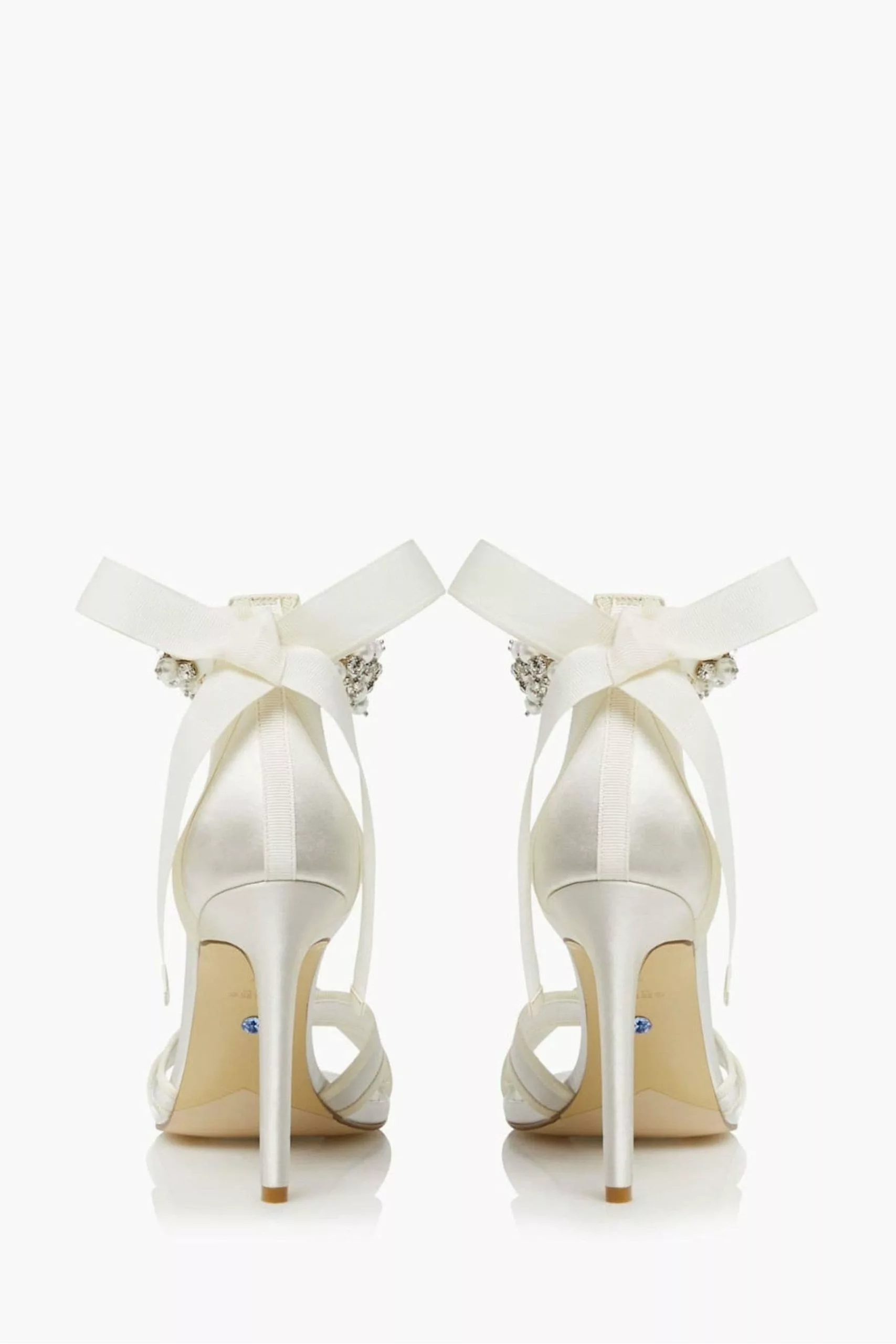 Combining comfort and opulence our Martina wide-fit bridal heels have been expertly crafted with memory foam lining to take you seamlessly from ceremony to first dance and beyond. A masterclass in feminine sophistication they have been designed with two simple cross over straps and delicate pearl-embellished ankle straps with ribbons that tie at the ankle. For us, it’s a focus on the intricate details like the delicate blue stone that has been set into the sole of each style that sets . The Wedding collection apart.