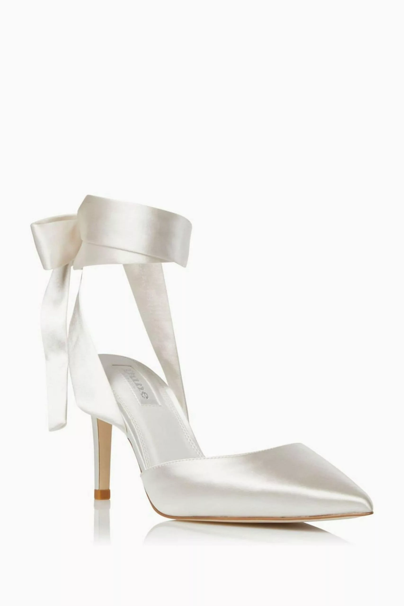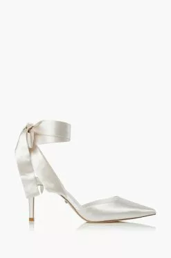 Dune London Daliah White Satin Ankle Tie Wedding Shoes