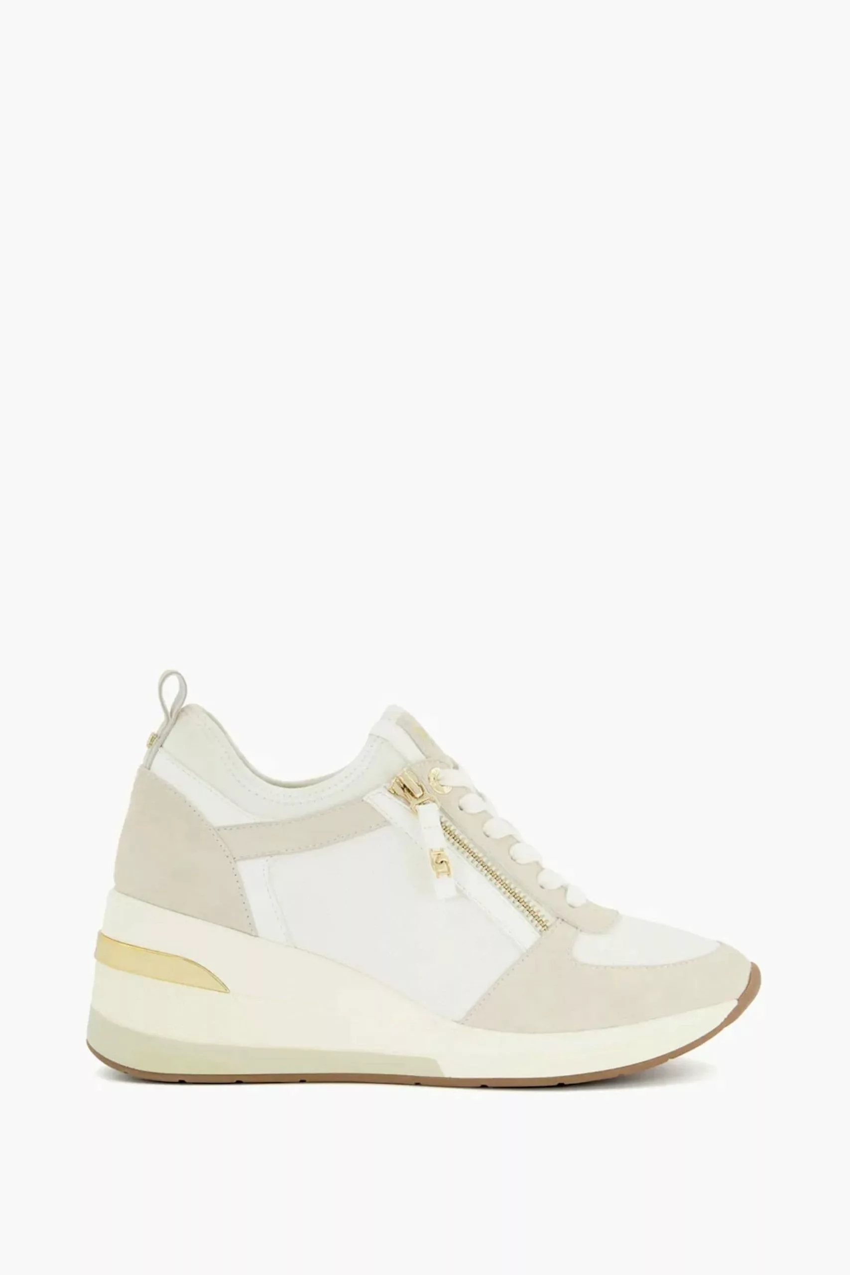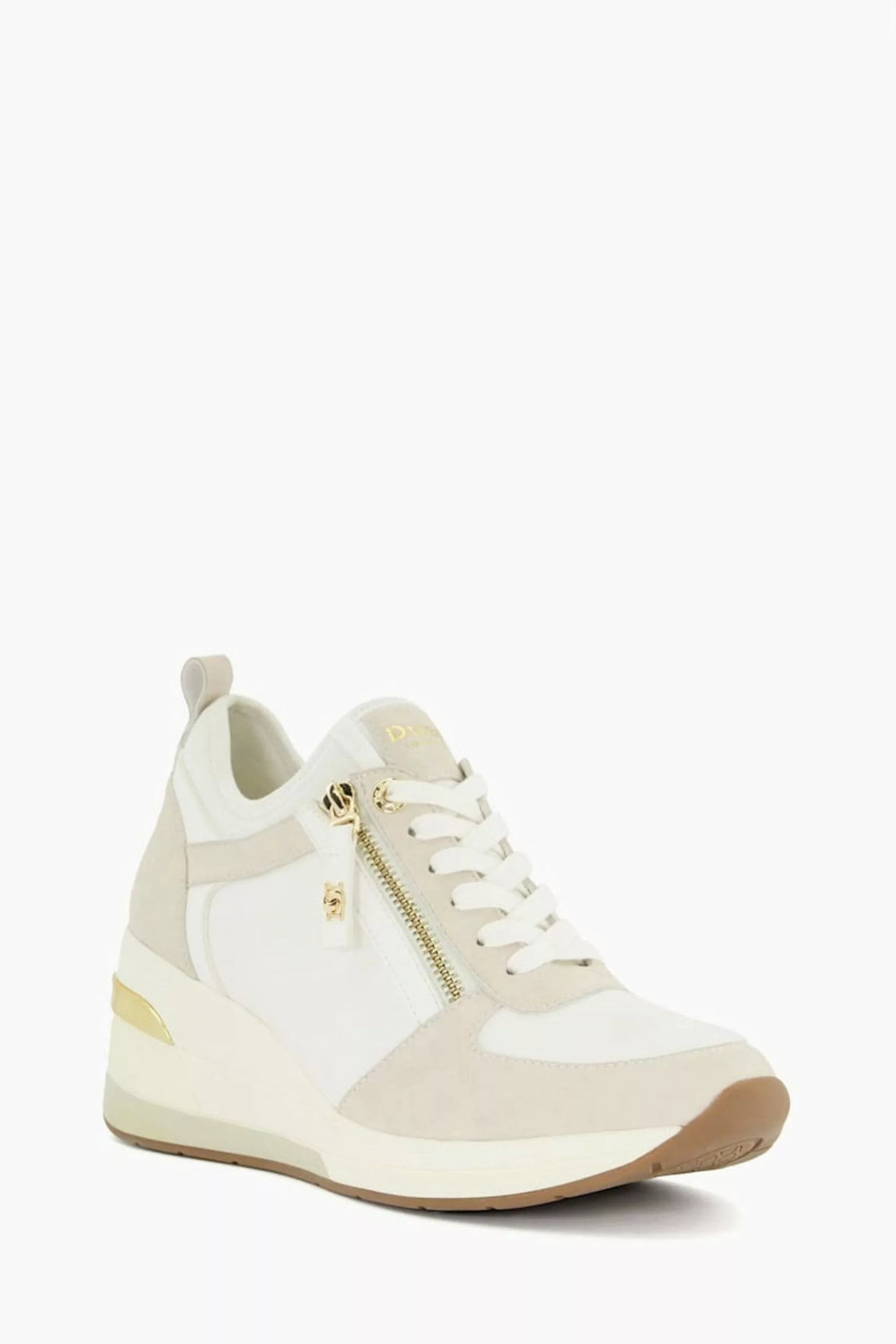 Step up your leisurewear with our new wedge sneaker Eilins. Meticulously crafted with the finest materials and culminating polished metal hardware this elevating silhouette offers both comfort and style. An effortless way to enhance your casual wardrobe this lace-up style is refined with our bespoke 'DD'-interlock branding.