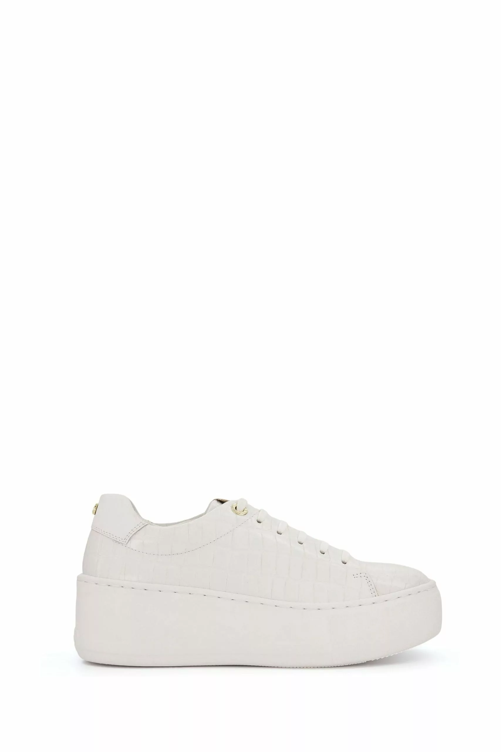Elevate your style game with our contemporary take on classic tennis shoes Estrid. Designed in-house they re subtly detailed with geometric topstitching and set on flatform soles. Complete with a lace-up front and our signature Dune London branding.