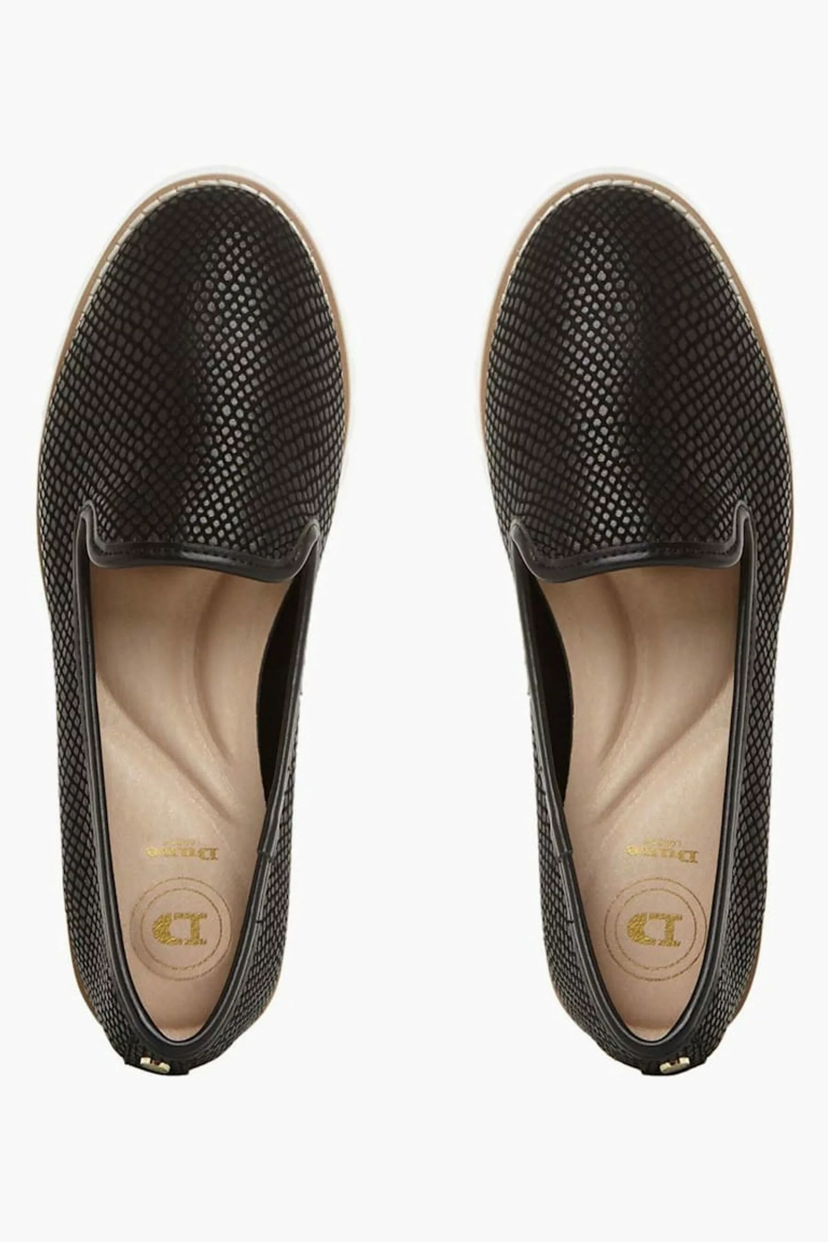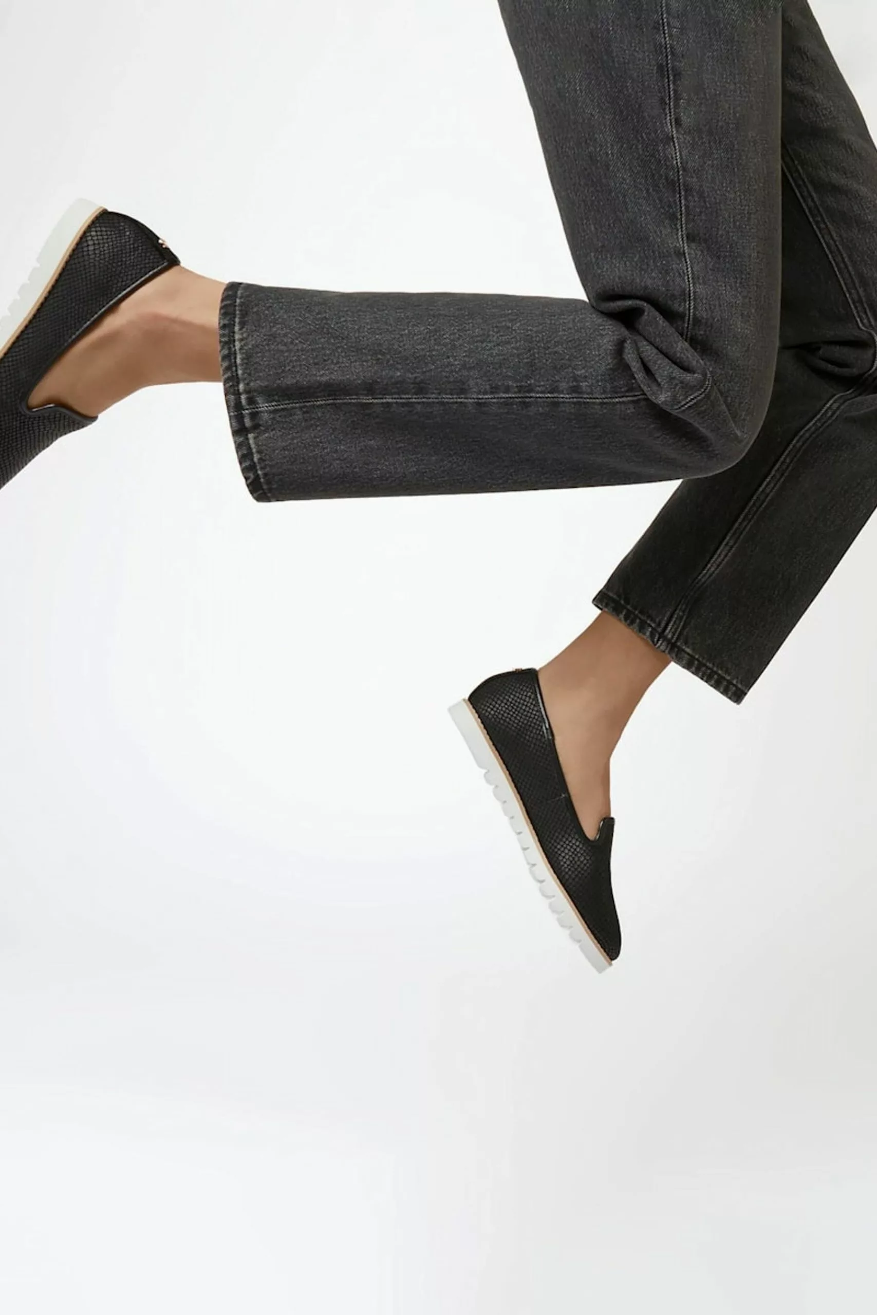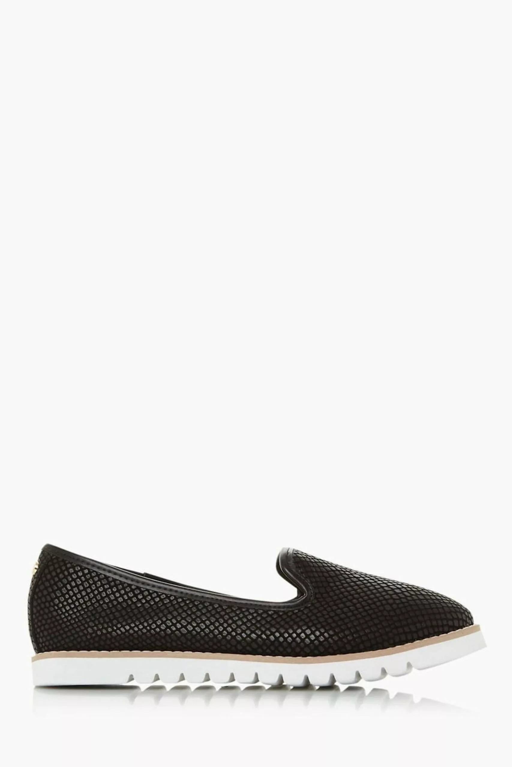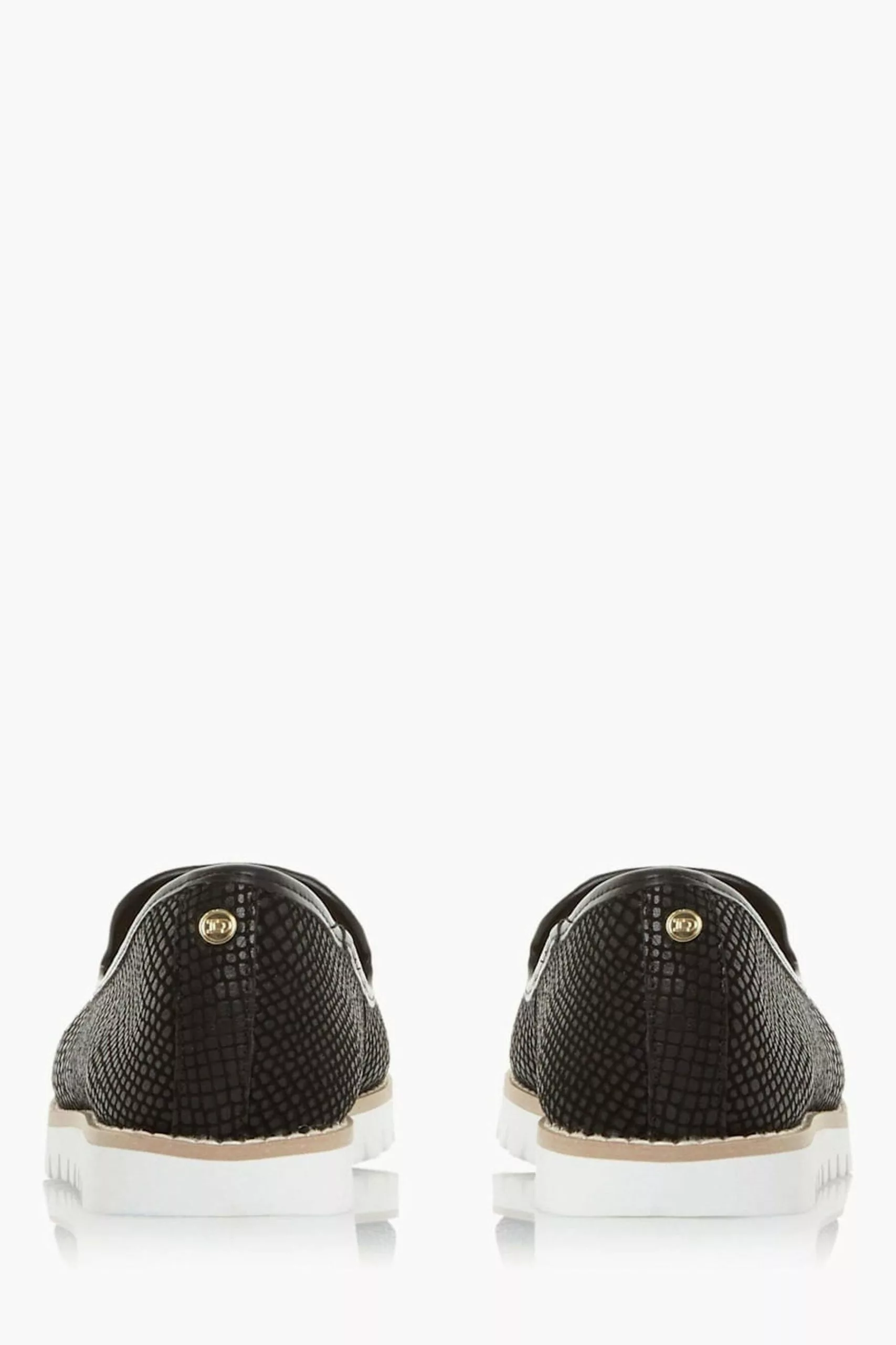 The Galleon loafer from Dune London is a versatile styling option. Showcasing a textured upper and contrasting sole. It features a slipper-cut design and a classic round toe.