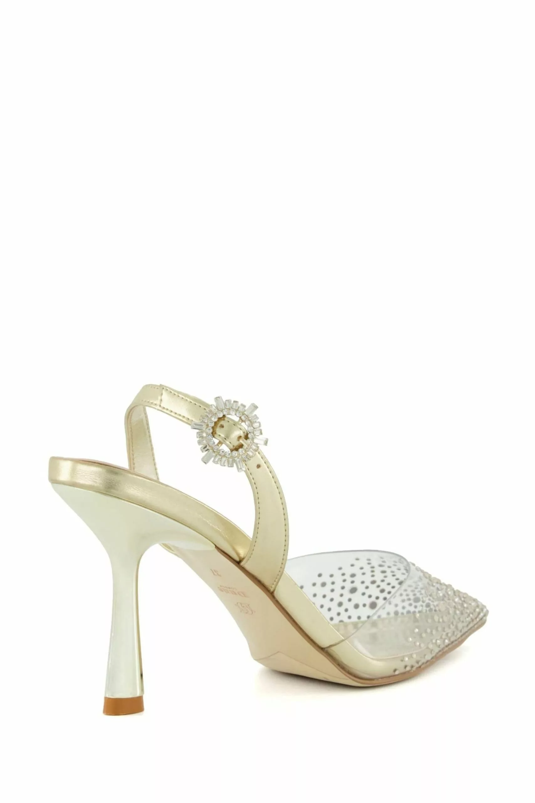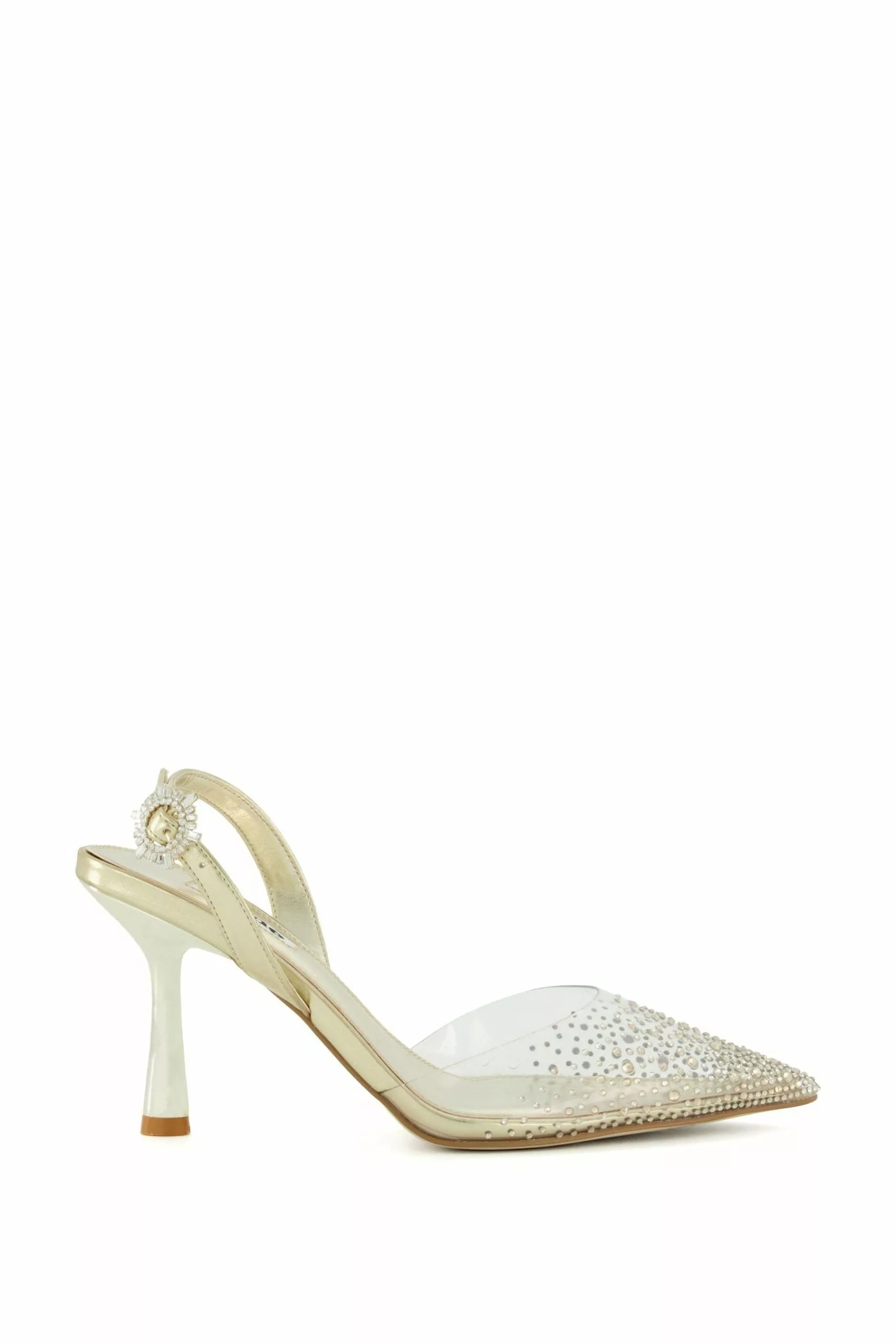 Dune London Gold Central Diamante Perpsex Slingback Shoes