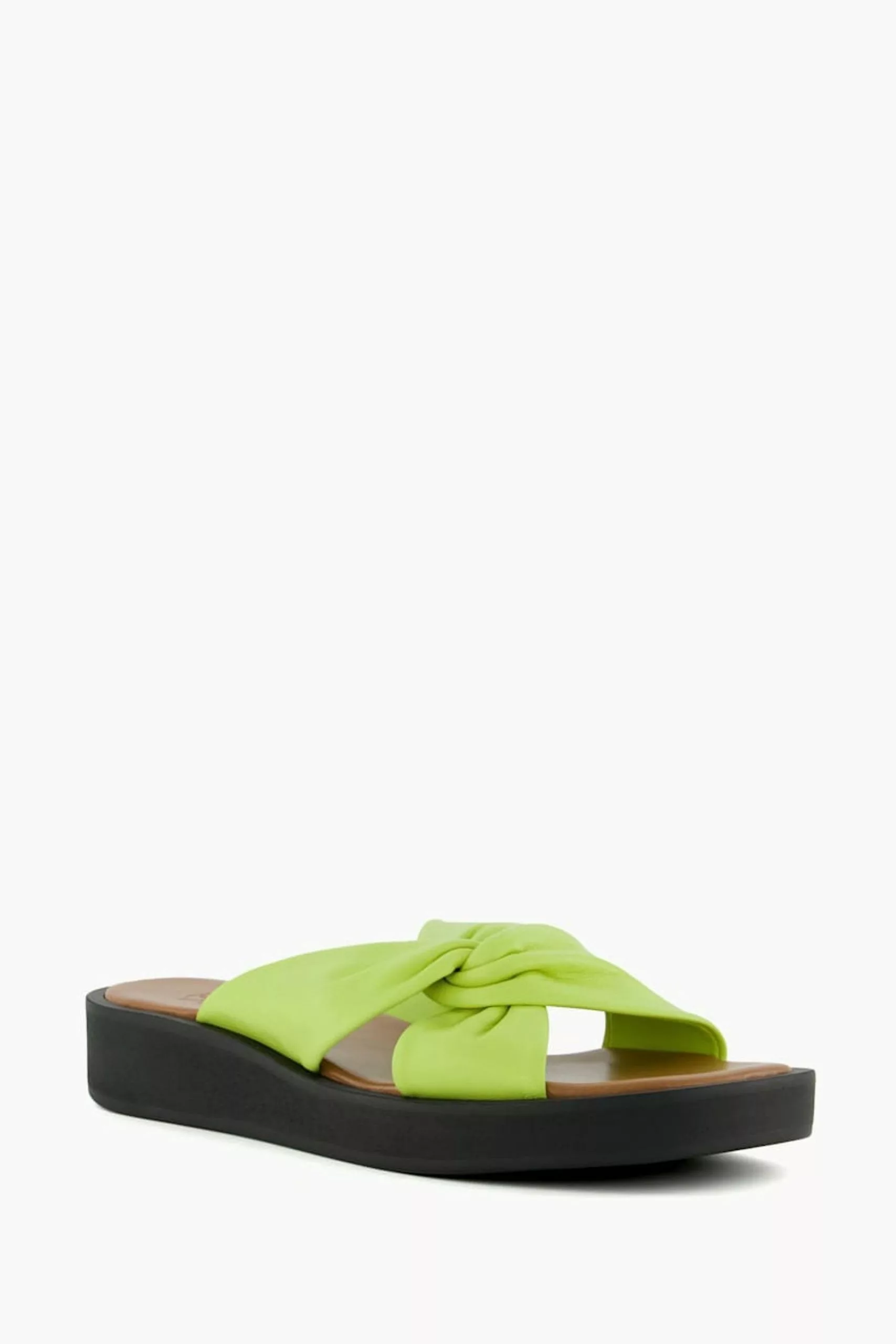 Dune London Green Lizo Knot Flatform Slides