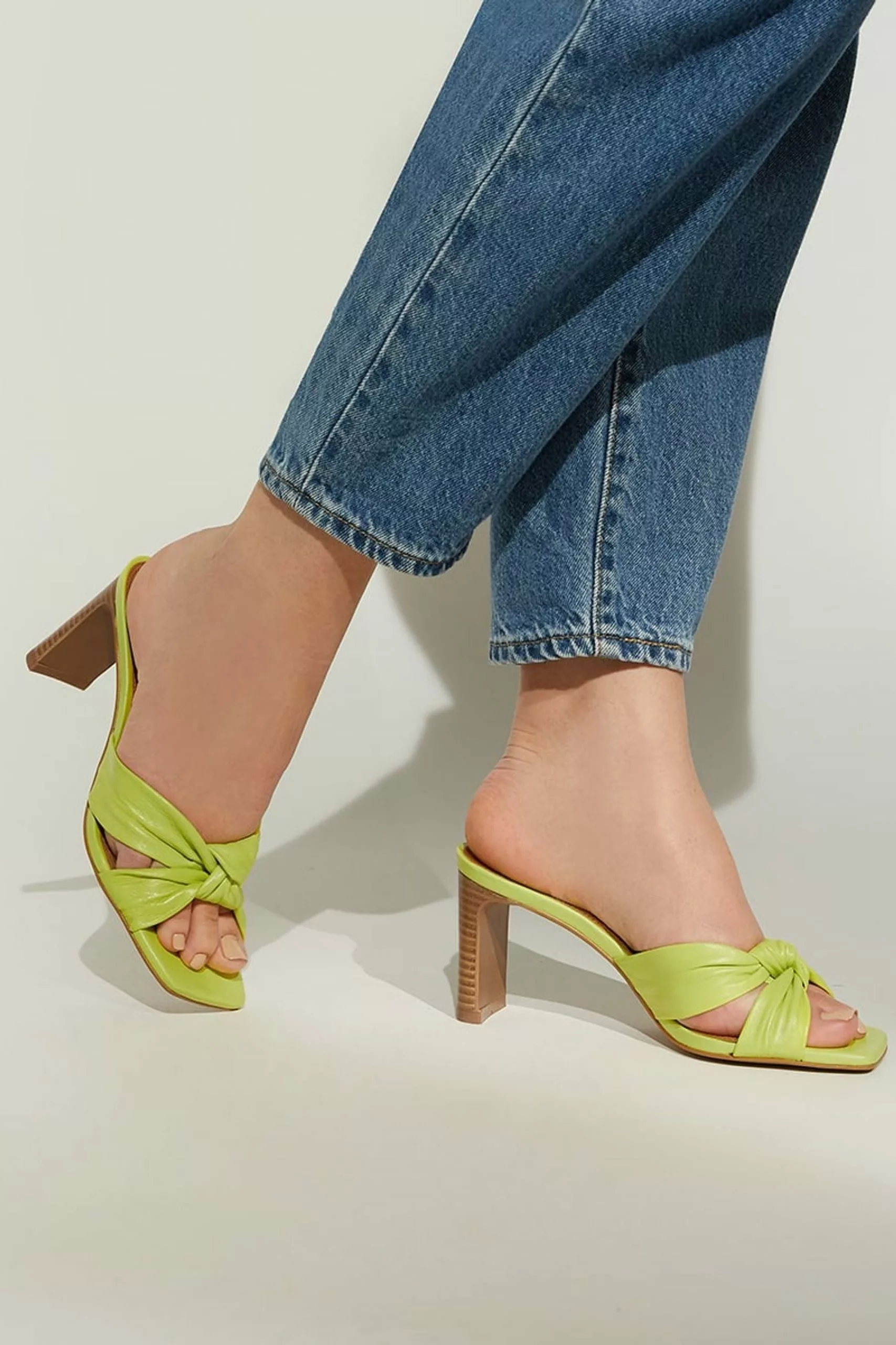Warm city weather is calling for open-toe mules like Maize. Designed in-house with the smoothest leather they are cut for a contemporary square toe and wide straps along the vamp that is formed into an elegant knot detail. Resting on a wood-effect block heel.