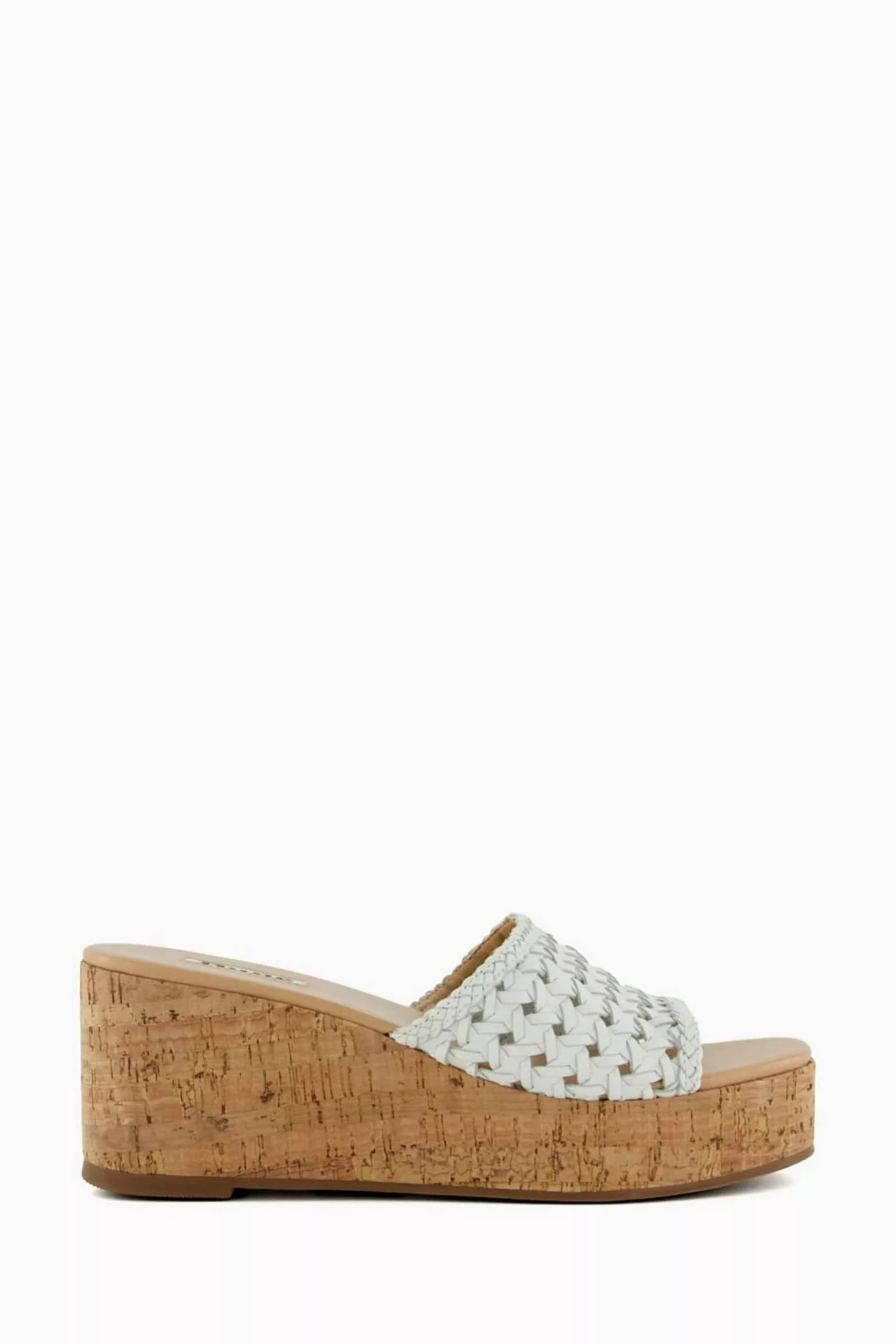 Wedge heels are one of the season s key trends and Katey will take your warm weather look to the next level. Crafted from interwoven stands of luxurious fabric across the upper this mule-inspired design has been set on a lightweight corkscrew wedge sole. Finished with Dune London branding on the footbed this style promises to elevate your daytime wardrobe.