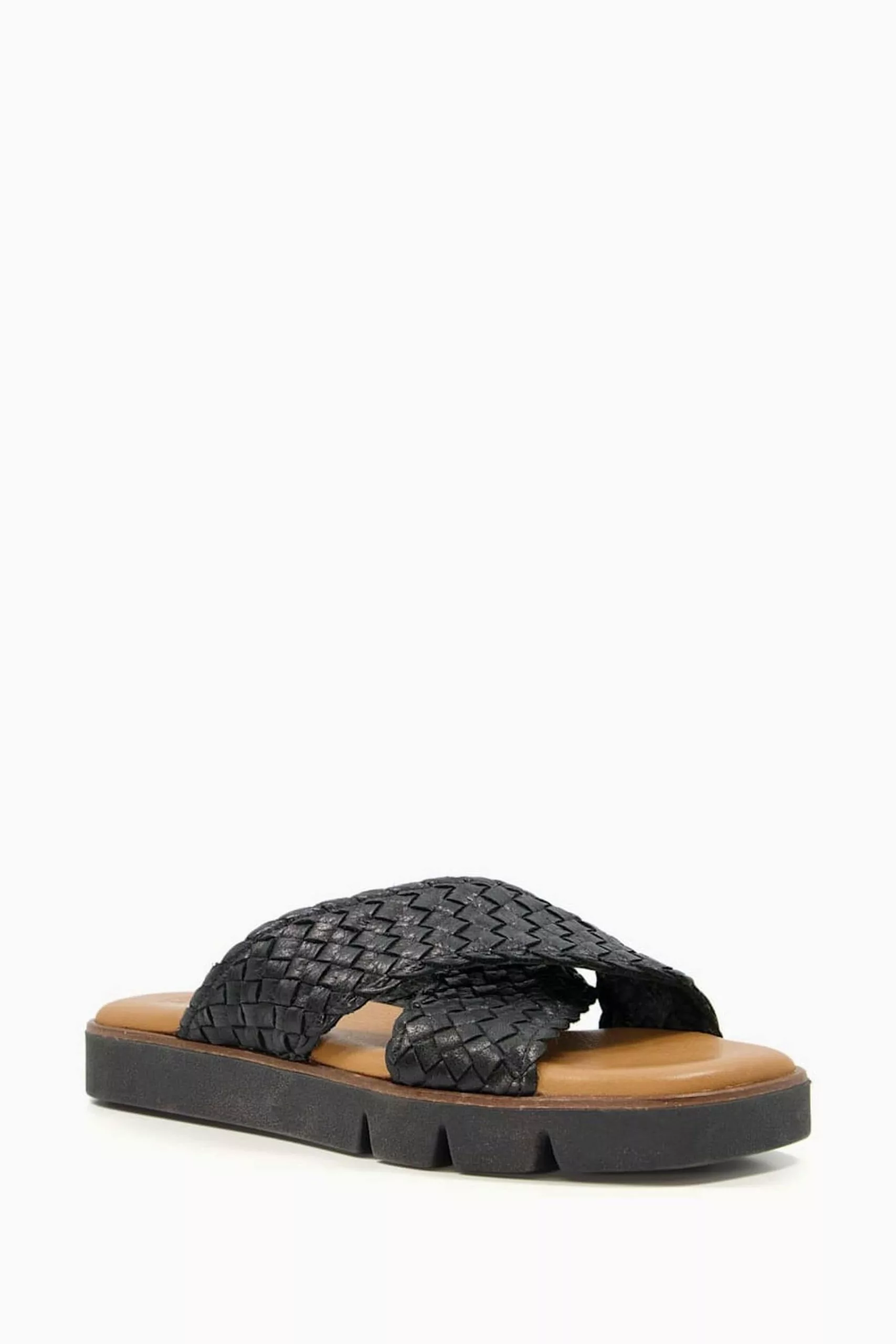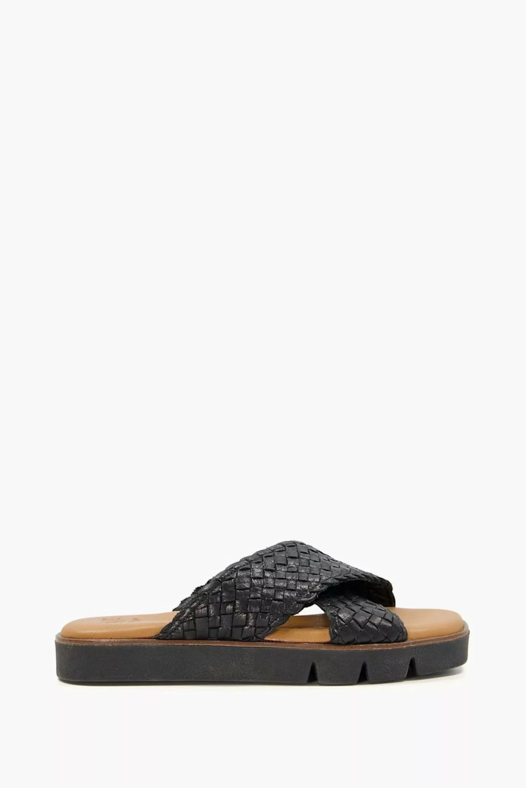 Timelessness meets directional appeal with these effortlessly stylish Lexey Sliders. The crossover straps are scalloped and intricately woven with luxurious leather while the biker-inspired sole instantly adds a modern twist.