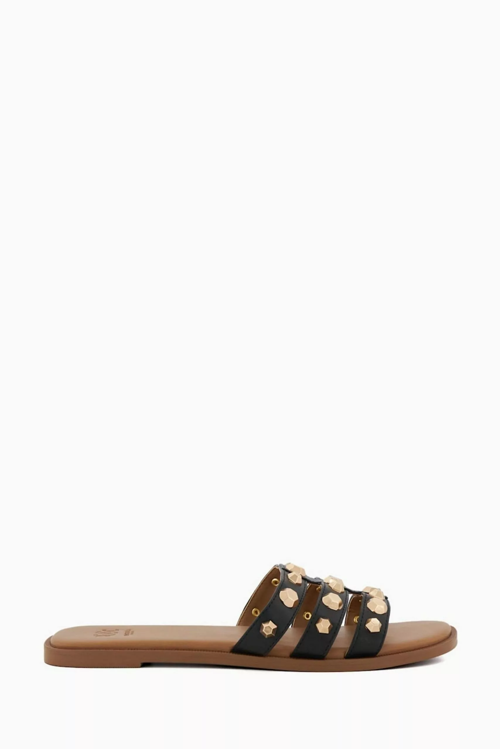 Take casual styling to the next level with Little. Crafted from the finest leather the upper of this stand-out sliders boast three caged straps that are each enhanced with stud embellishments. Finished with a lined footbed ensuring all-day comfort these statement sandals will ensure all style boxes are ticked this season.