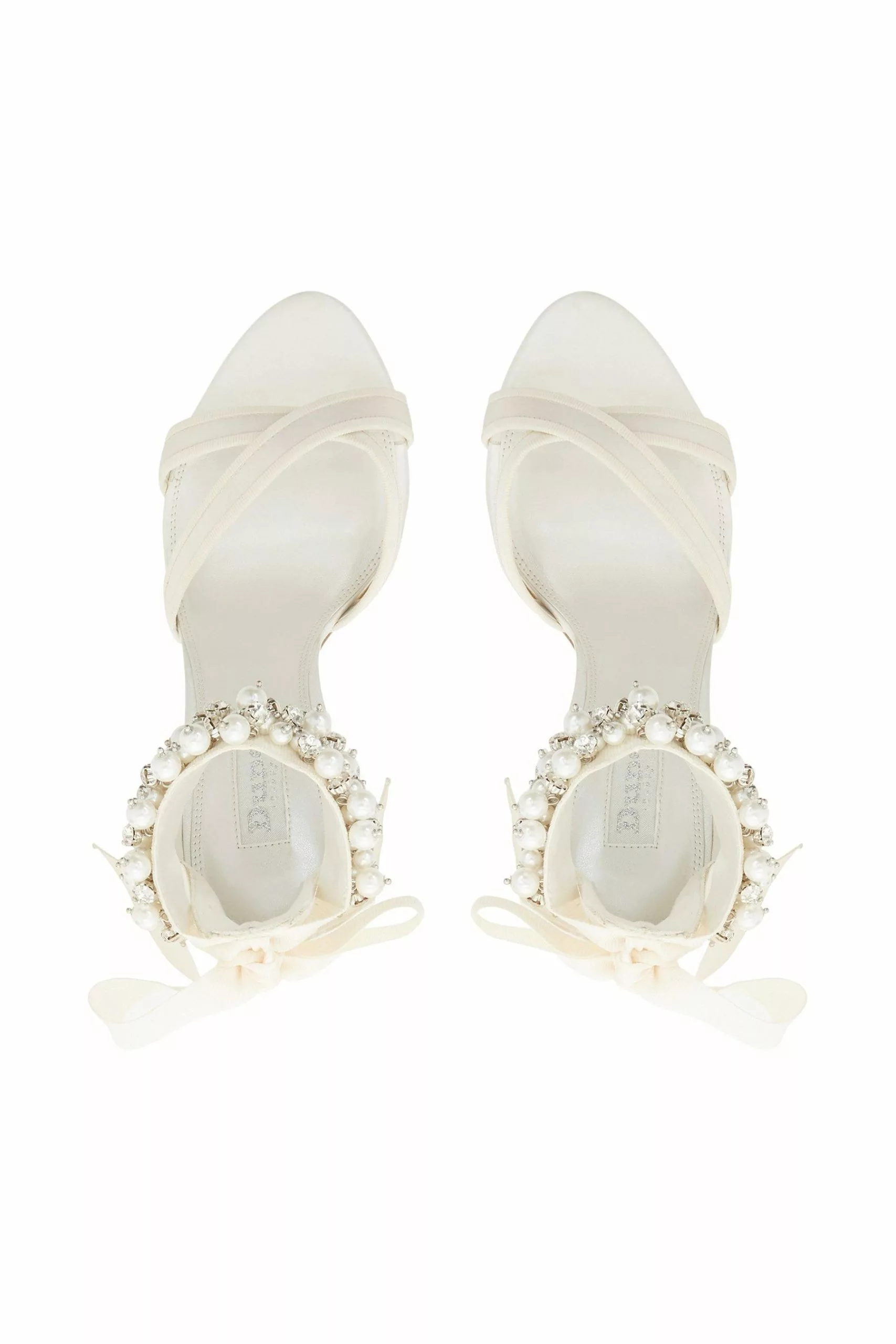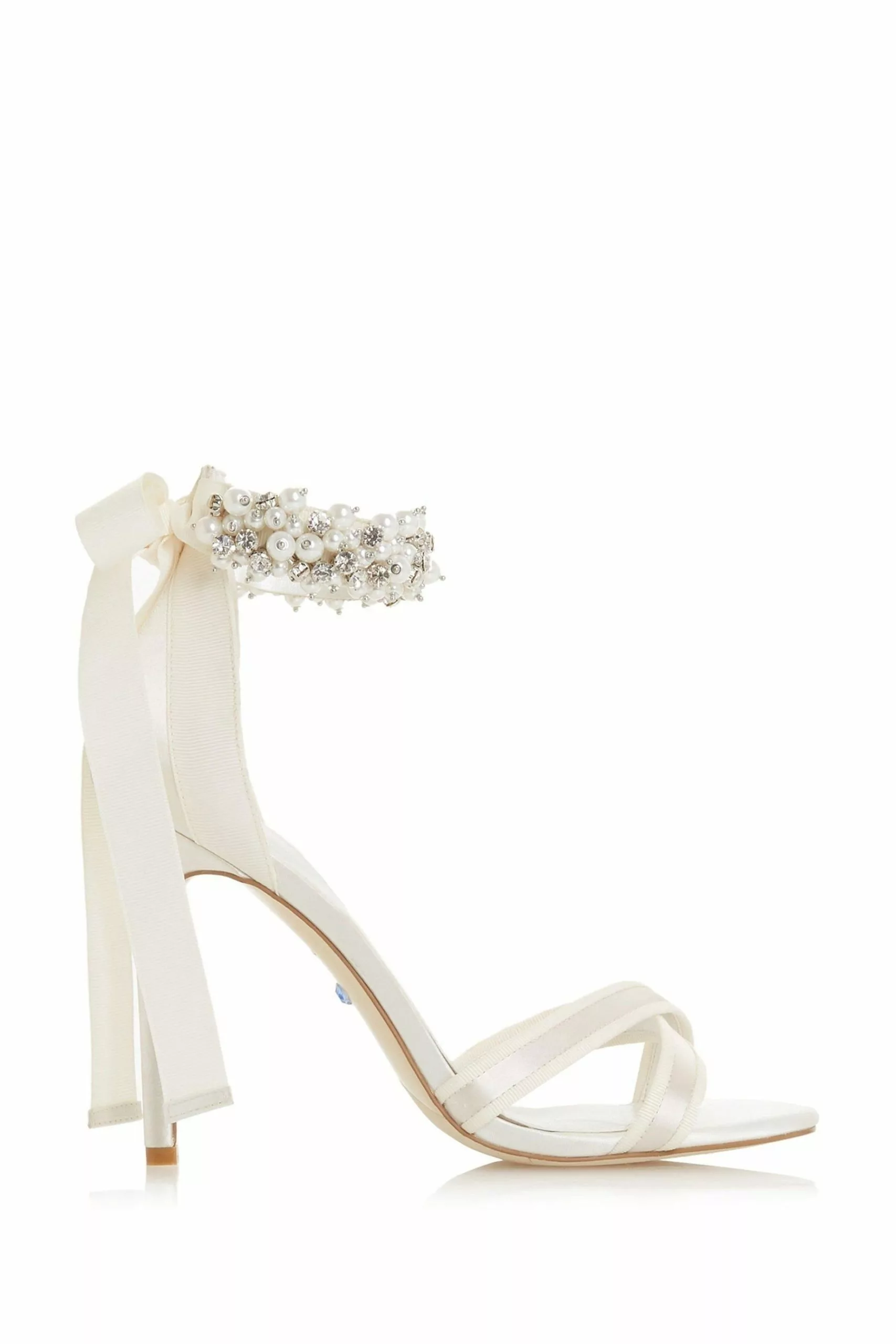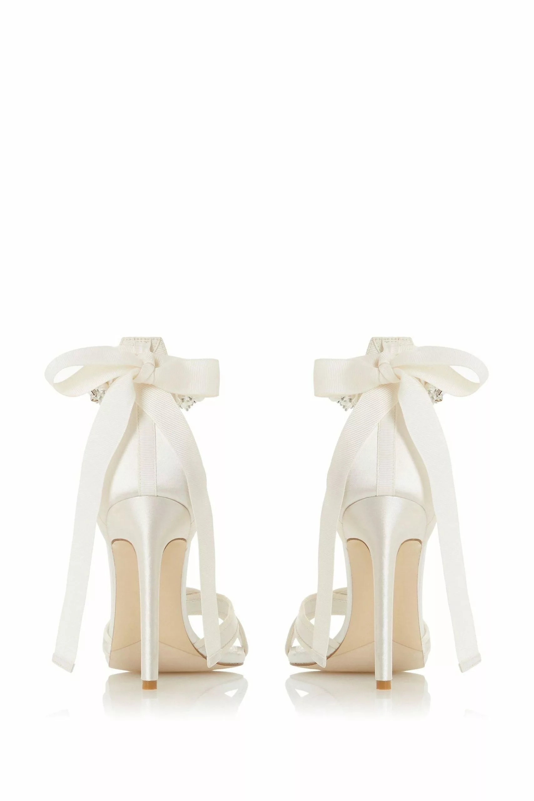 Dune London Martine Ivory Satin Embellished Ankle Tie Court