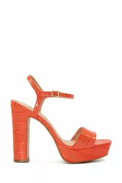 Designed to make a statement, Dune London Matche heels boast a chunky platform silhouette and a high block heel. Constructed from patent croc effect, they are available in a range of summery shades.
