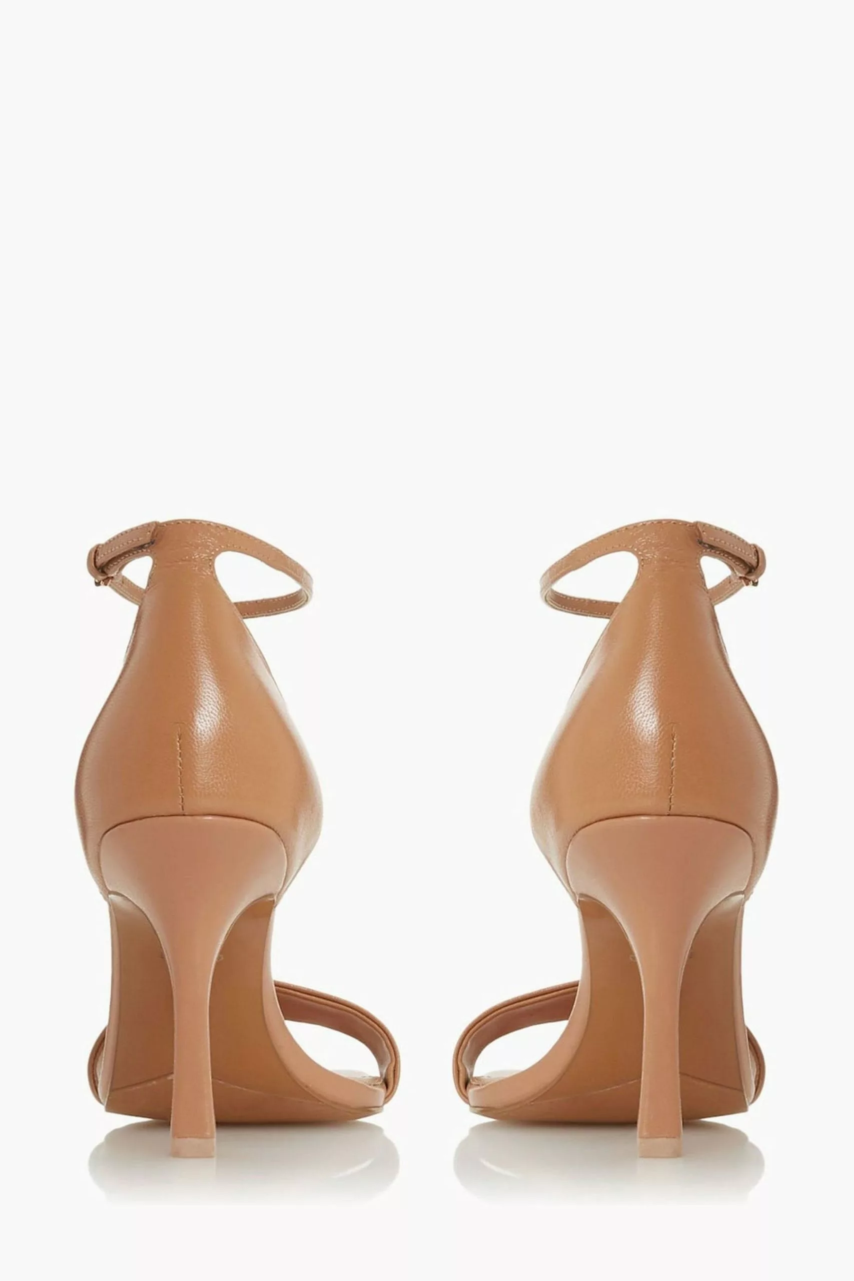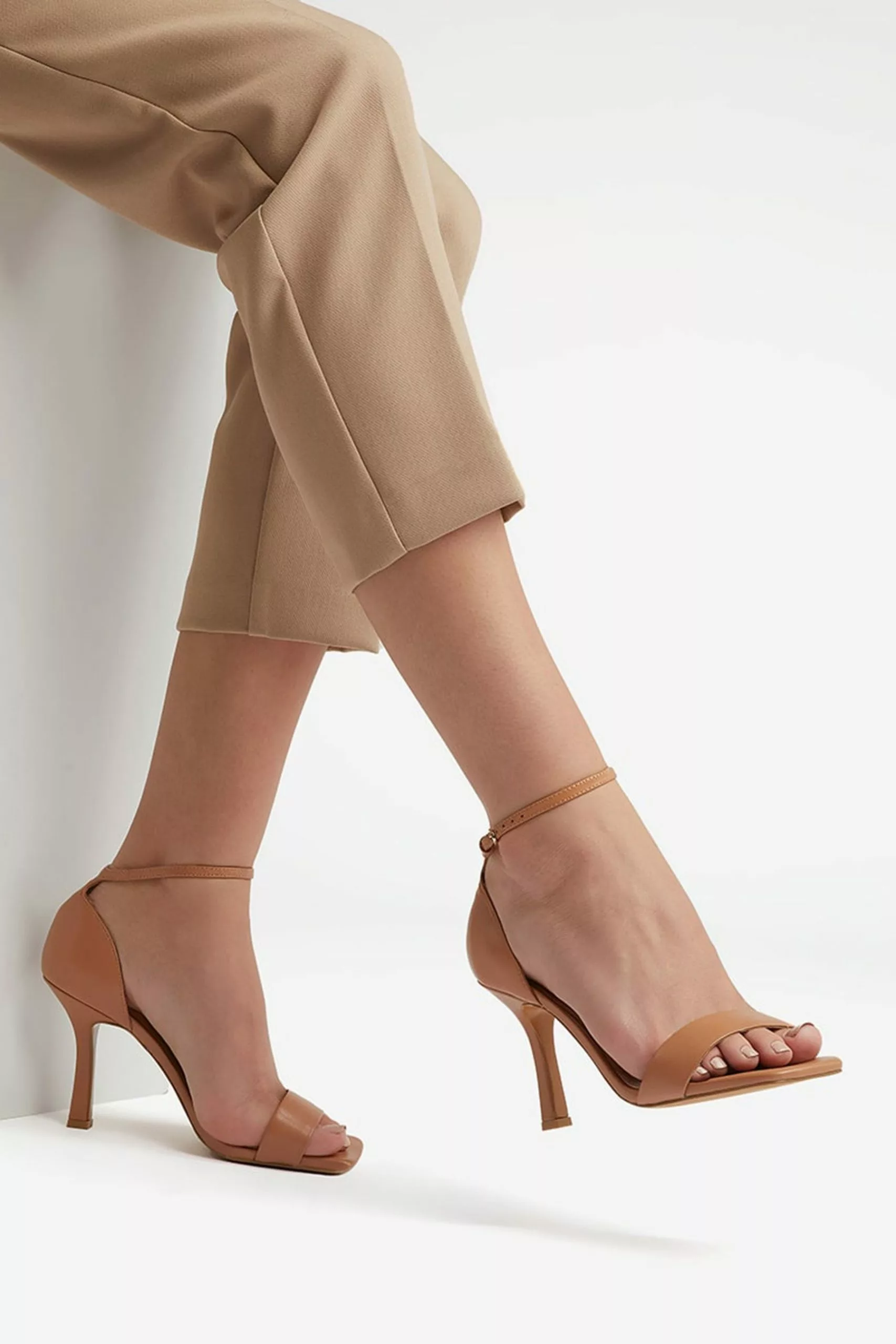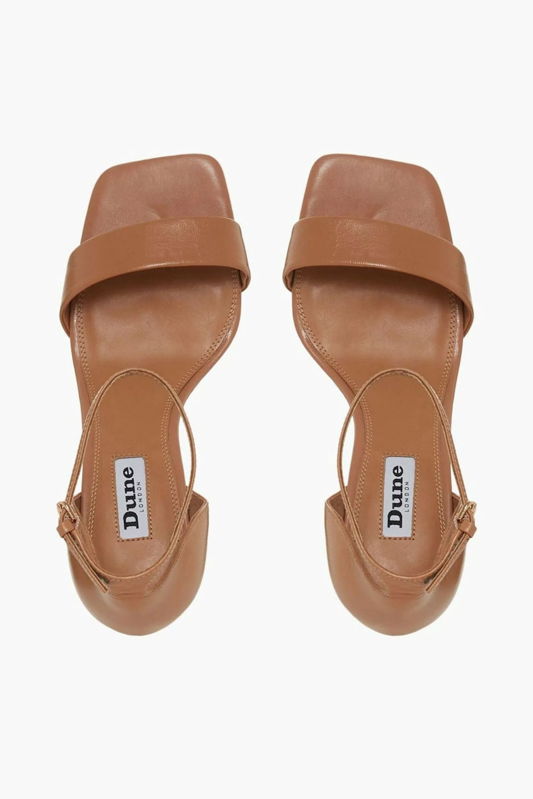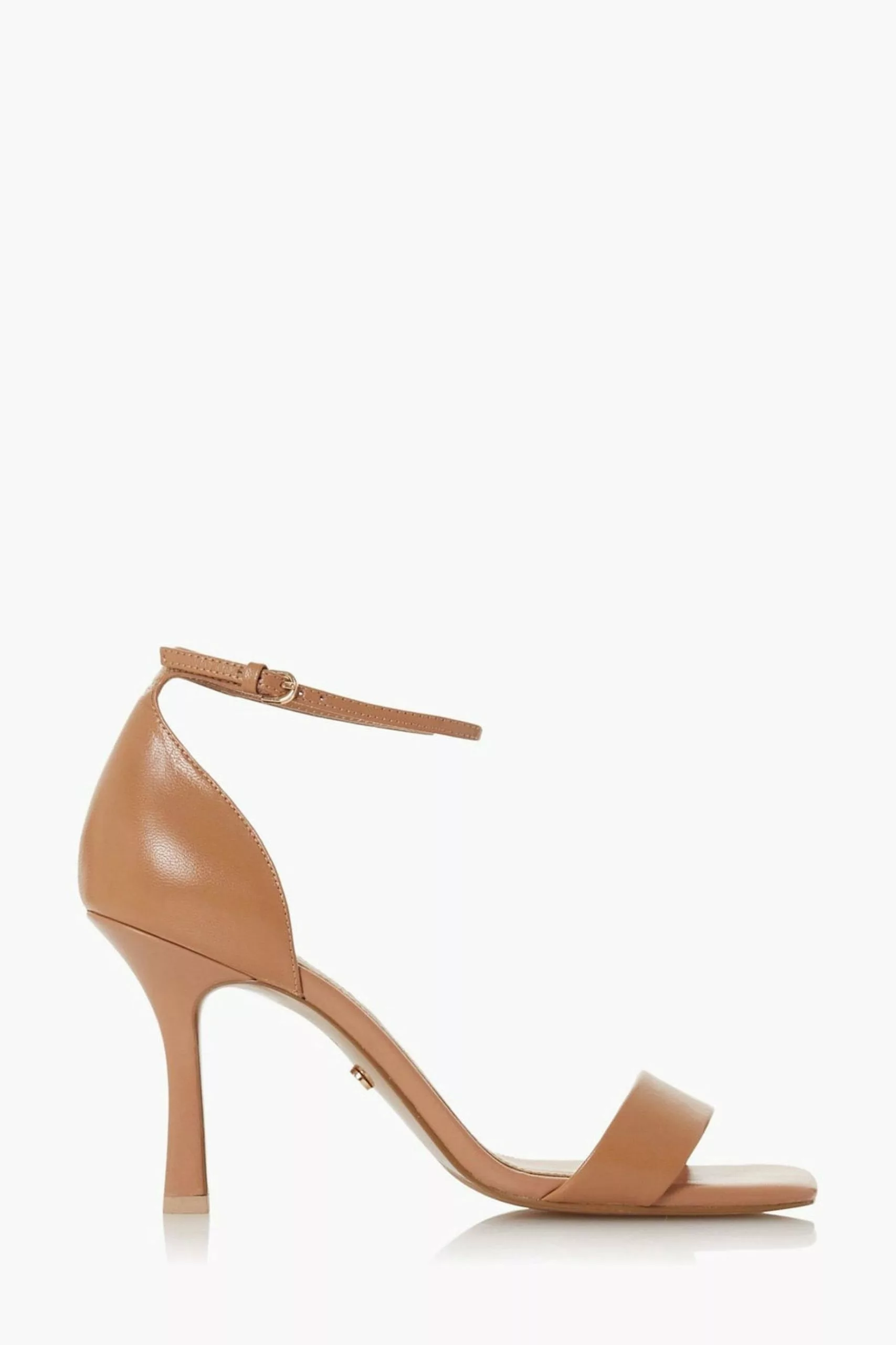 Opt for a touch of 90s style with the Meri T sandal from Dune London. Showcasing a barely-there design with slim straps and a square open toe. It rests on a slightly chunky high stiletto heel.