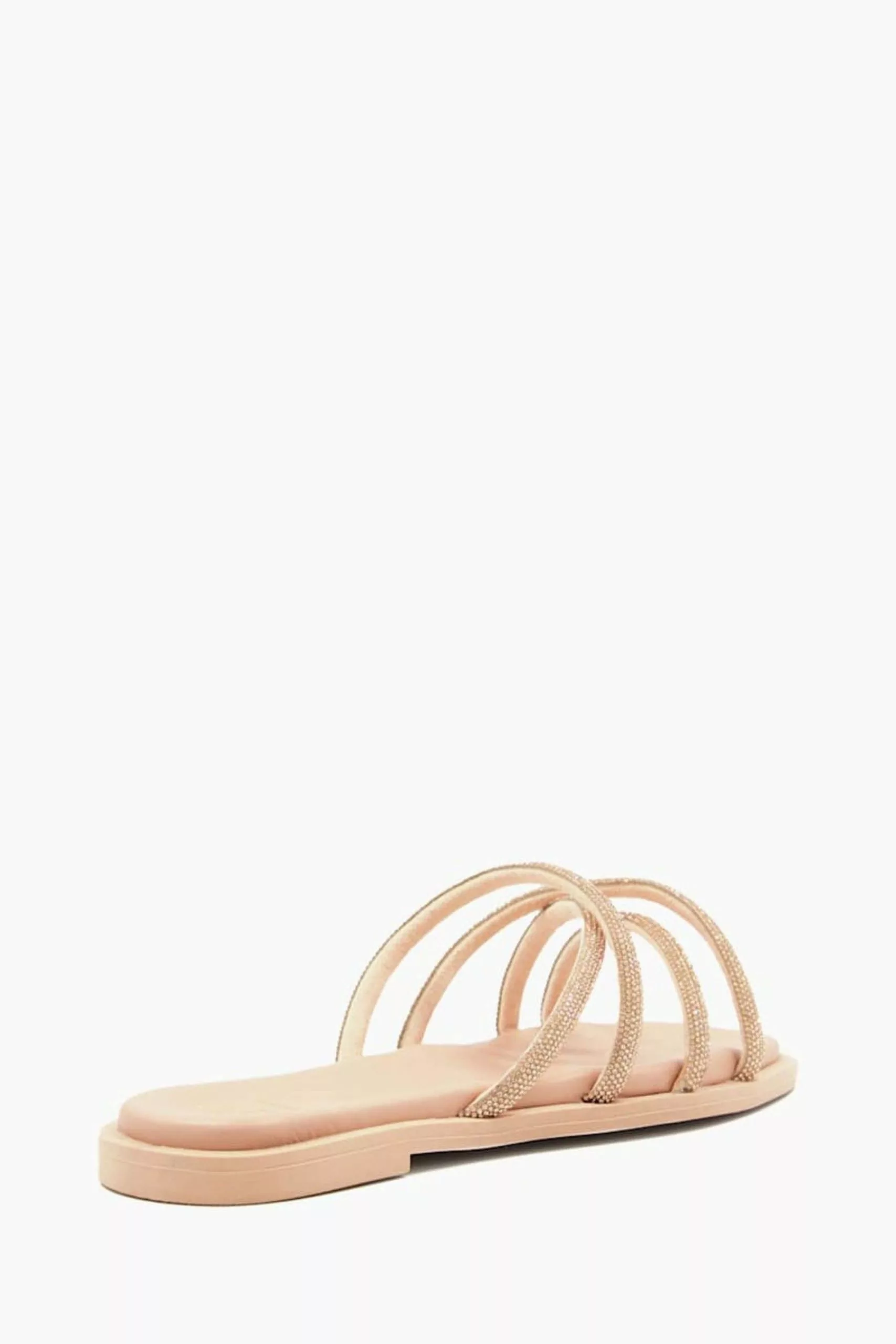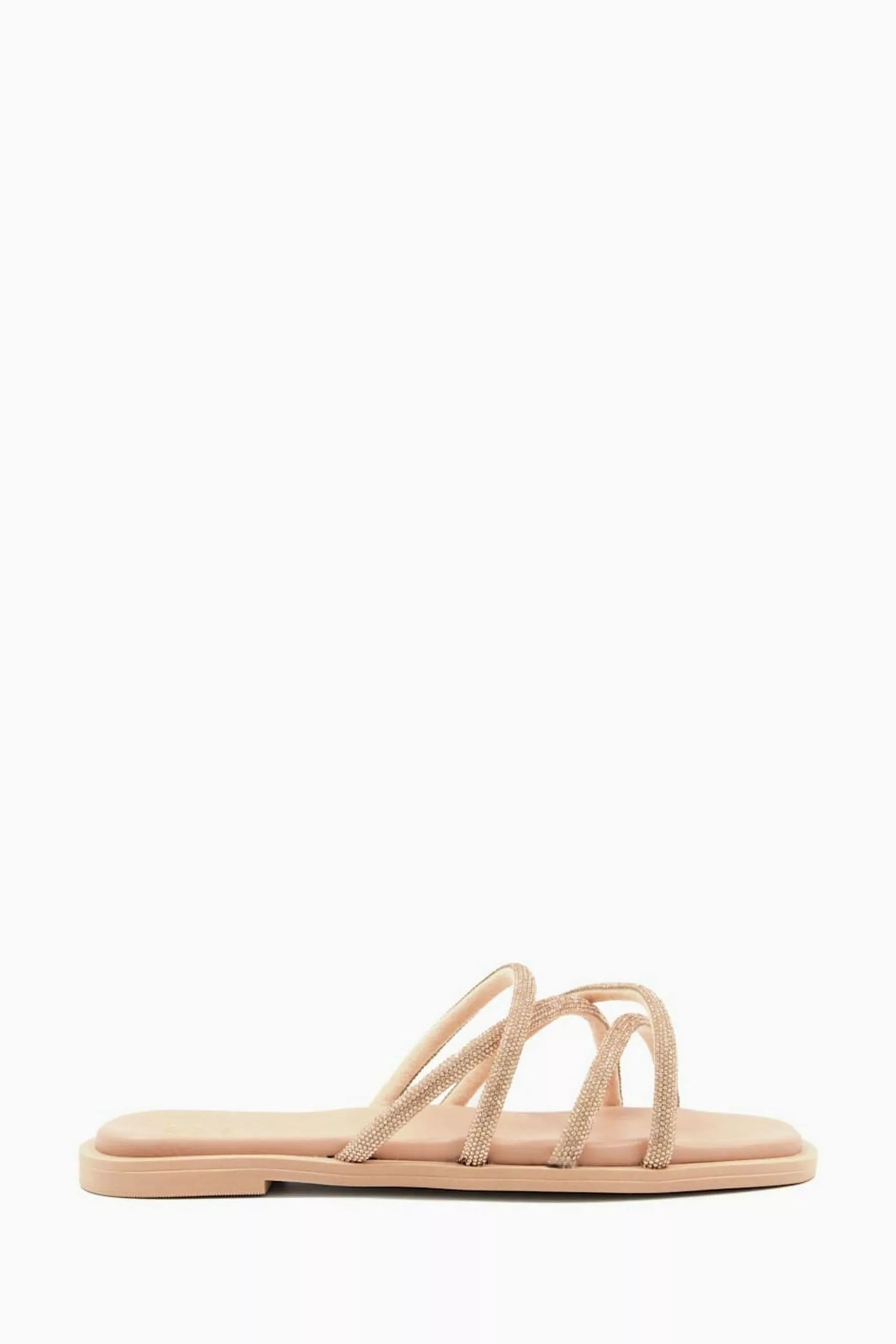 What s not to love about a stylish pair of sparkling flats? Embellished details are one of the most sought-after finishes this season and Lilybet incorporates the trend with comfort in mind. Cut for a square toe the crossover spaghetti straps of our Lilybet sandals are embellished with trinkets of small diamante adornments. Slip into yours and let your look shine from day to night.