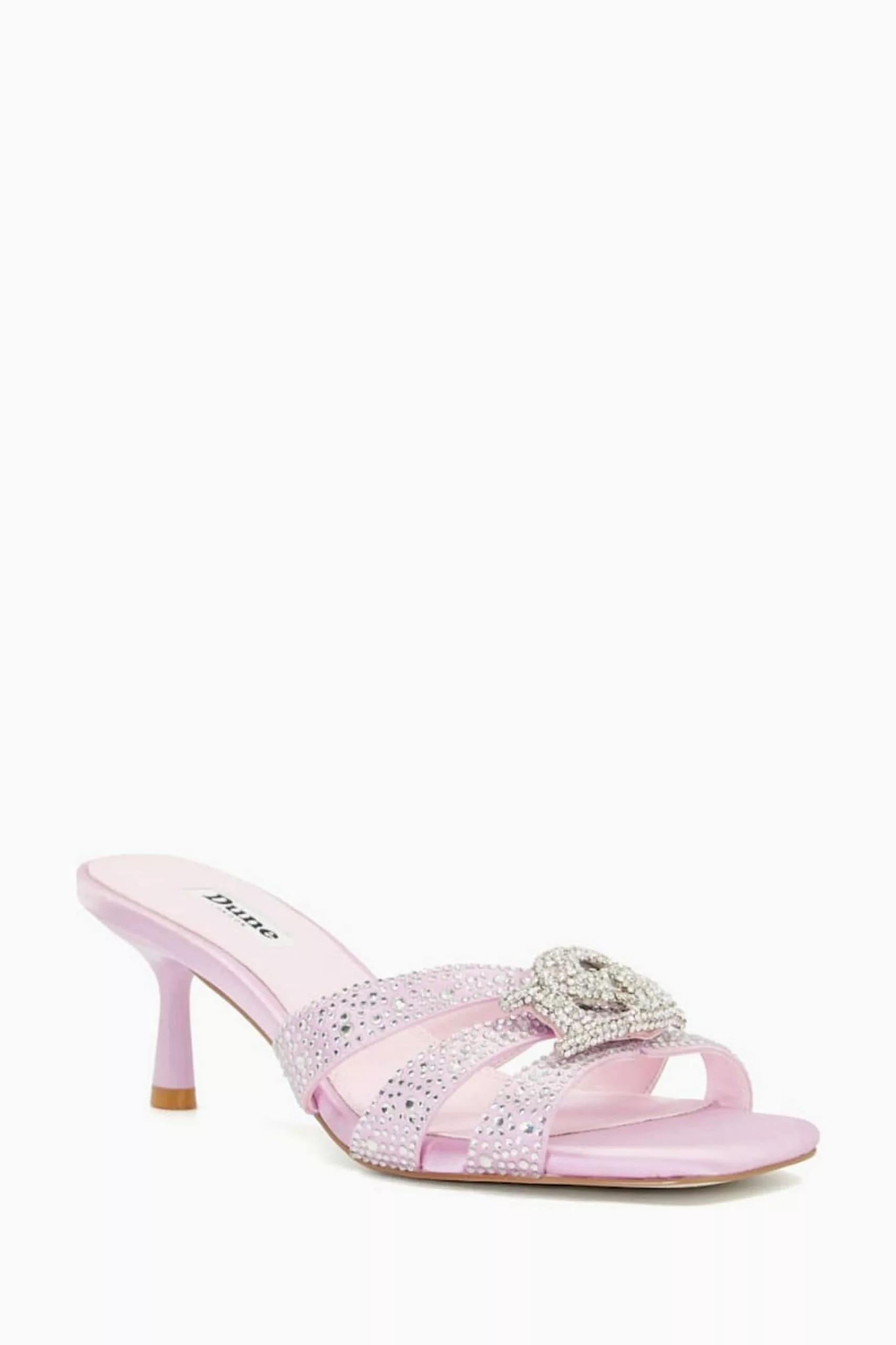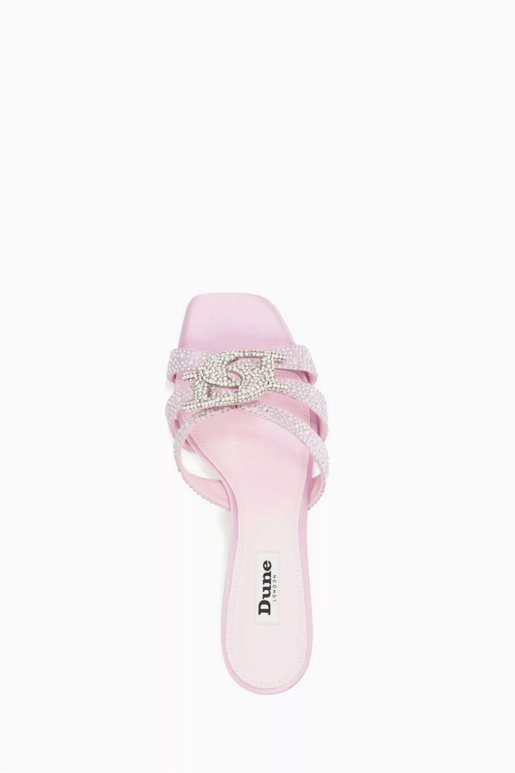 Our Manor metallic mules are a must for your partywear collection. Hot stone-diamante embellishments are adorned throughout multiple straps for a look that sparkles. The flared shape of the kitten heel creates a modern finish to an otherwise vintage look. Complete with our bespoke DD interlocking pair to perfection with our matching Beamed clutch bag.