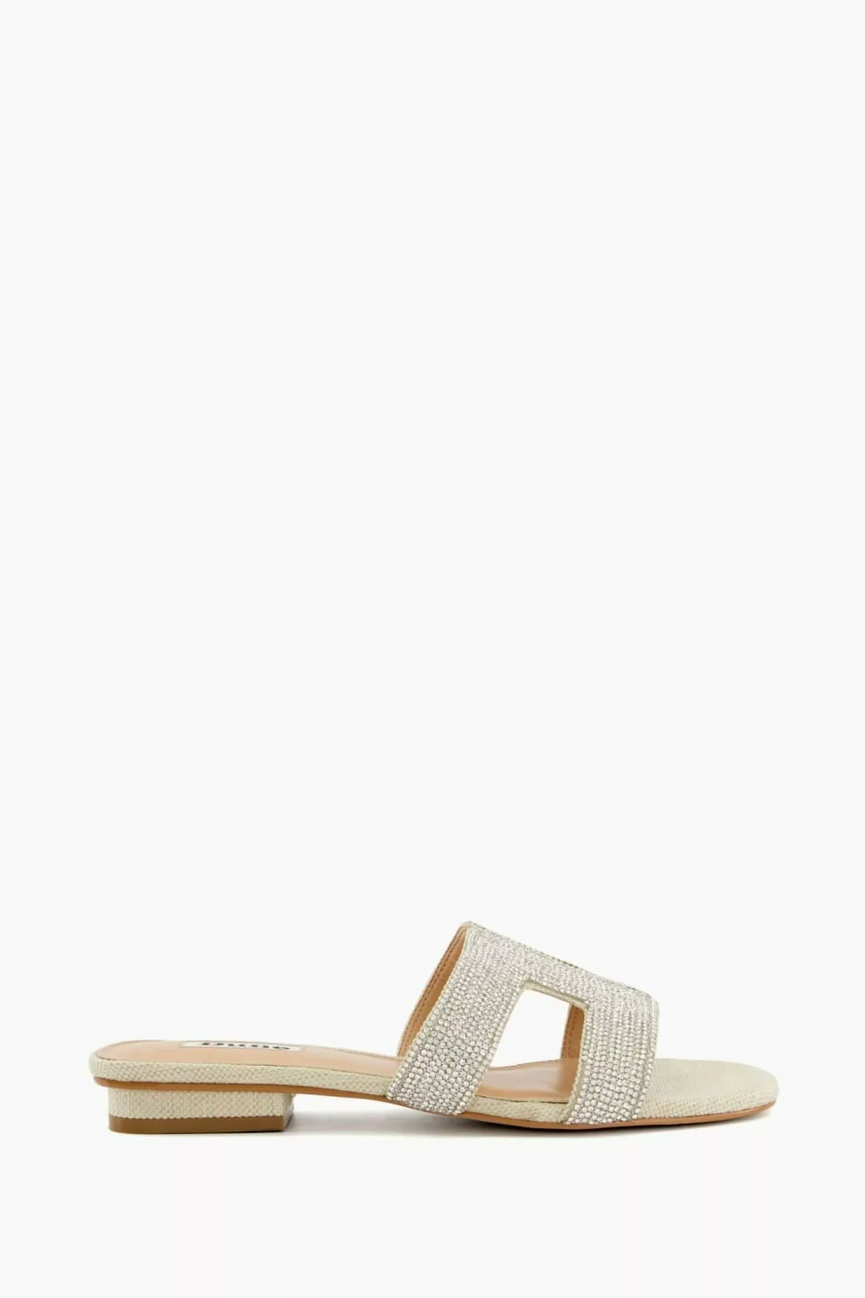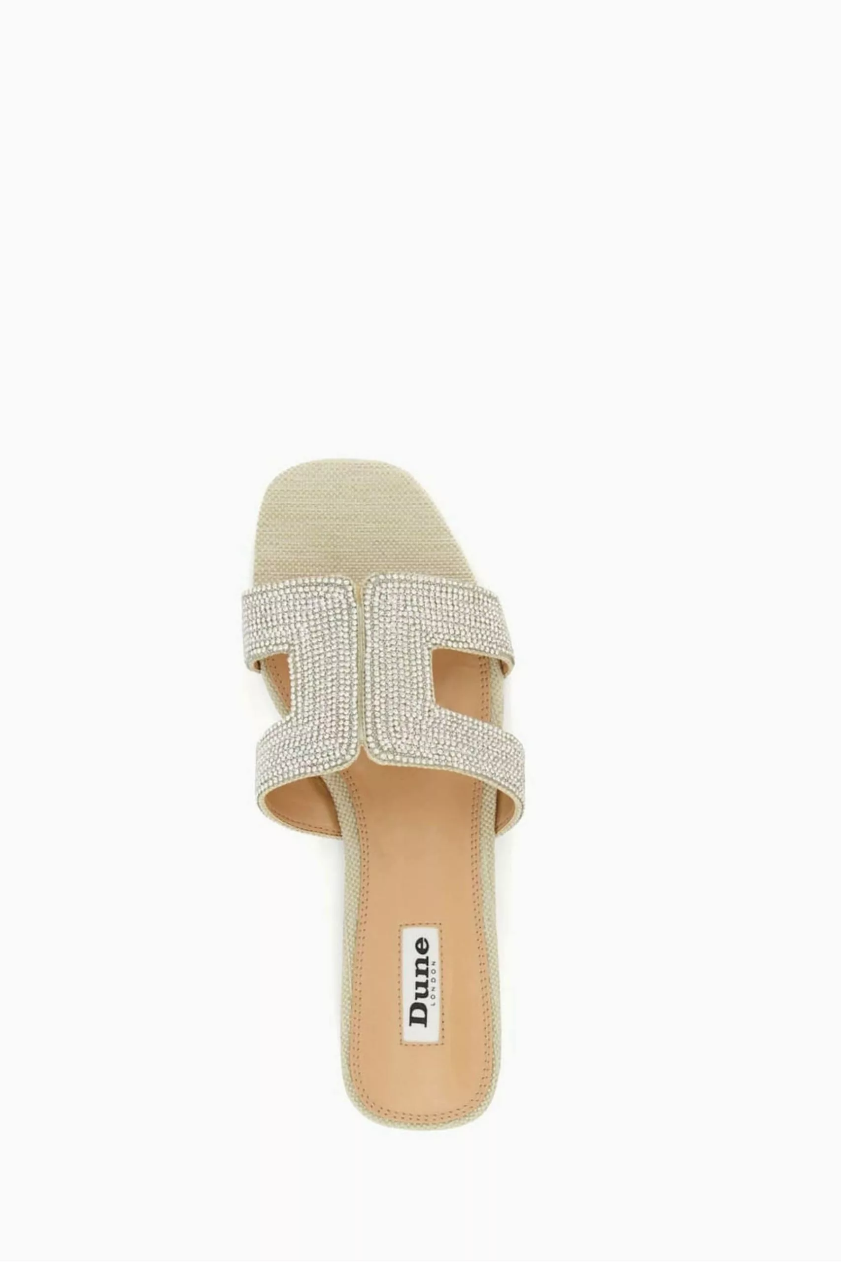 Stay smart and stylish this summer with Dune London s Loupe slider sandal. Featuring a cut out design with contrast stitching and a low block heel. An open sandal toe and resin sole complete the striking shoe.