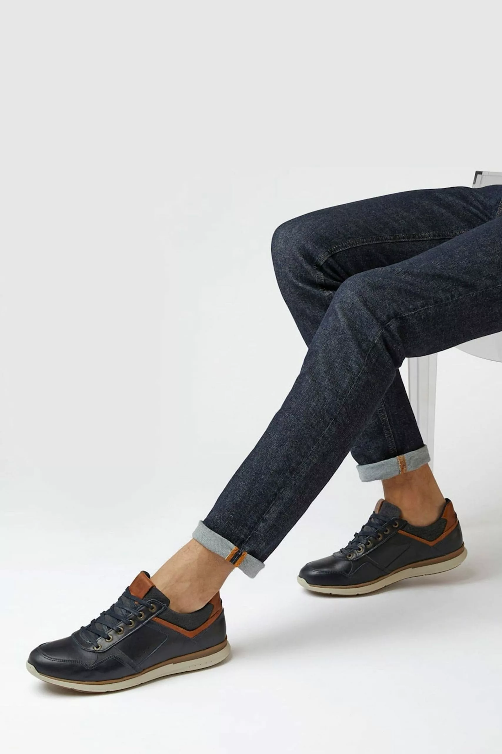 Smart-casual trainers brought to you by Dune London. Featuring a leather upper with piped detail and a lace front fastening. A contrasting sporty sole completes this stellar off-duty design.