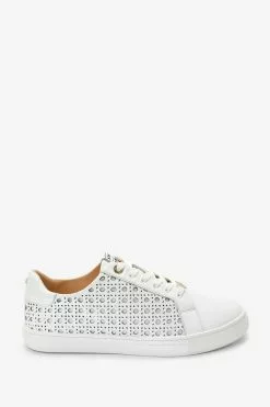 Dune London White Ease Laser Cut Slimsole Trainers