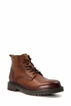 Dune London Chigwell Tan Brown Leather Metal Eye Chukka Boots