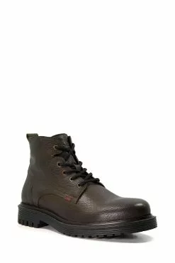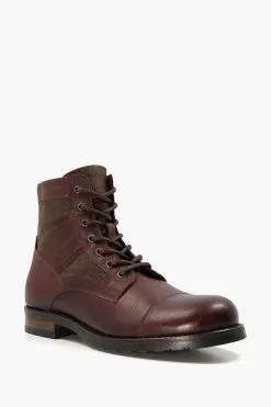 Dune London Cornered Canvas Panelled Toeca Brown Boots