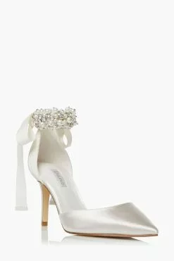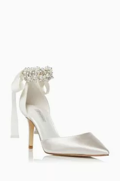 Dune London Natural Clarette Embellished Ankle Strap Wedding Shoes
