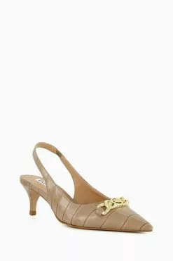 Dune London Natural Current Chain Front Slingback Court Shoes