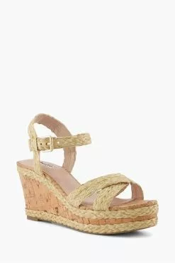 Dune London Natural Kelisa Braided Upper High Wedge Heel Sandals