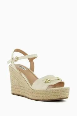 Dune London Cream Cabanna Oval Sprayed Heel Slingback Courts